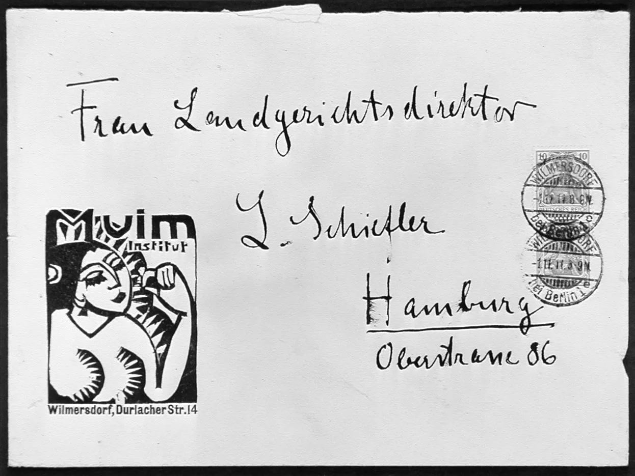 - Woodcut on envelope