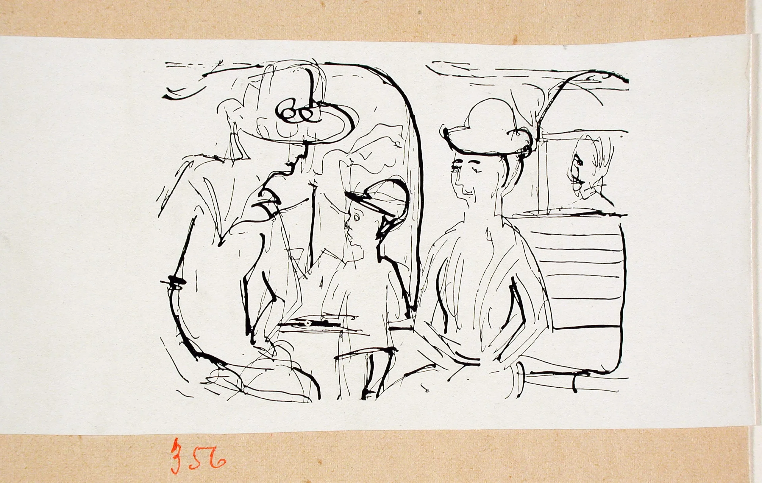 - Printed pages and collage: Reproduction of drawing, red pencil