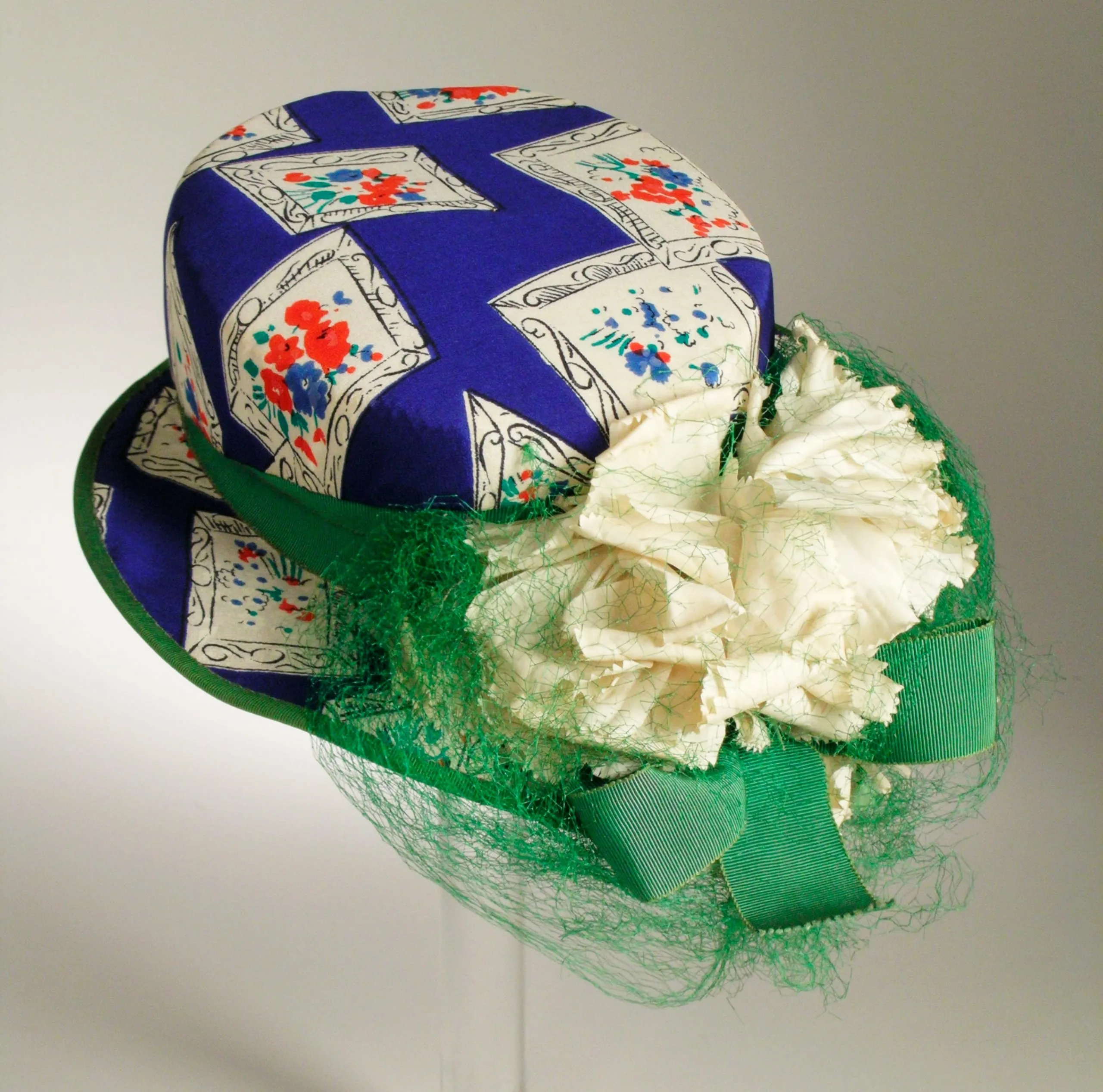 - Printed silk, silk net, grosgrain ribbon