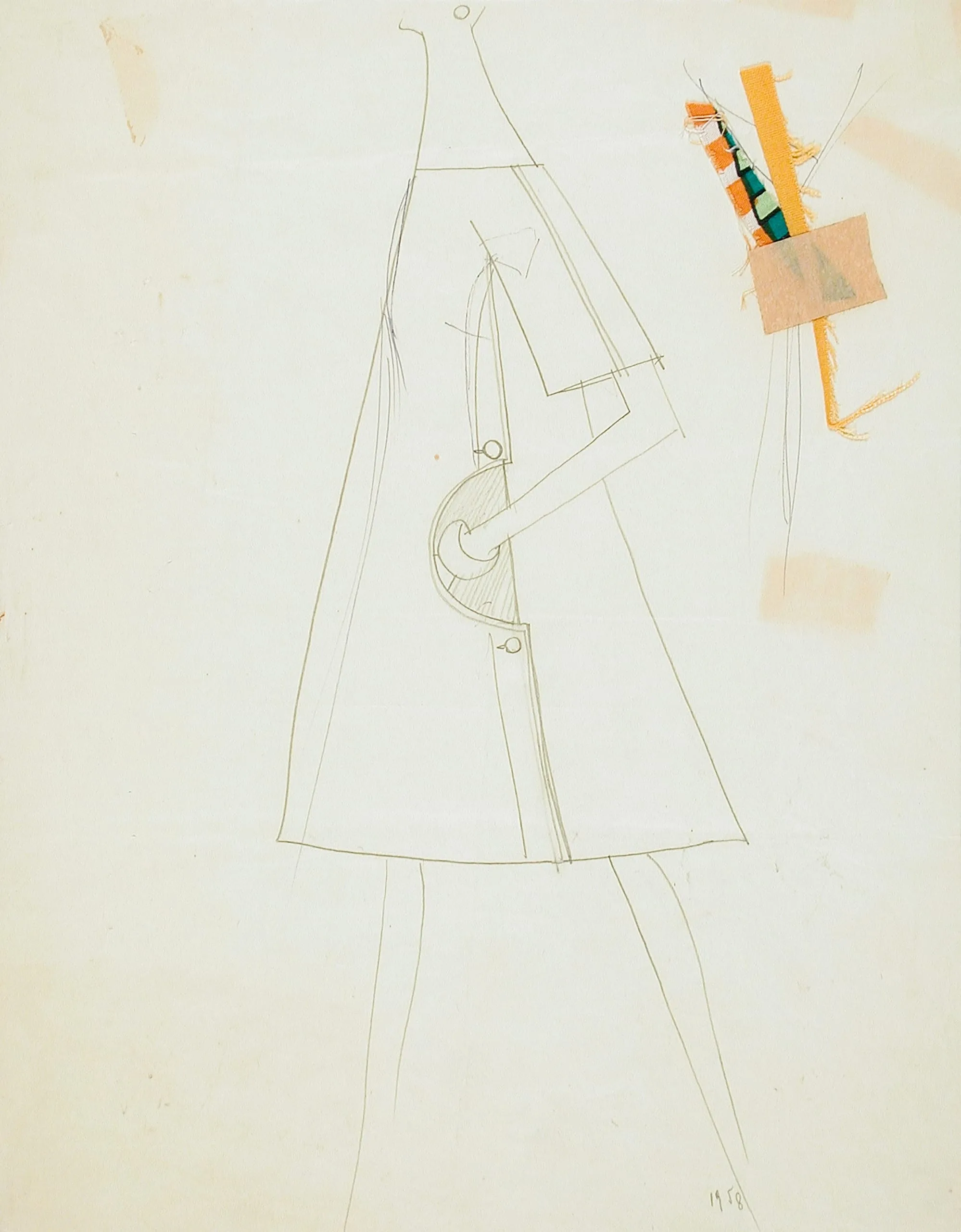 - Pencil on paper with fabric swatches attached