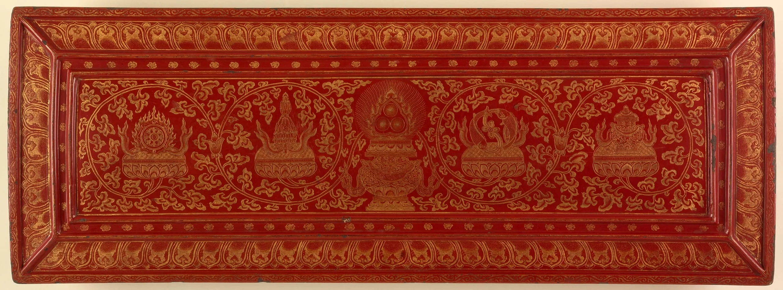 - Sutra Cover (Jingzhiban) with Three Flaming Jewels (Sanbao) and Four of the Eight Buddhist Symbols (Bajixiang)