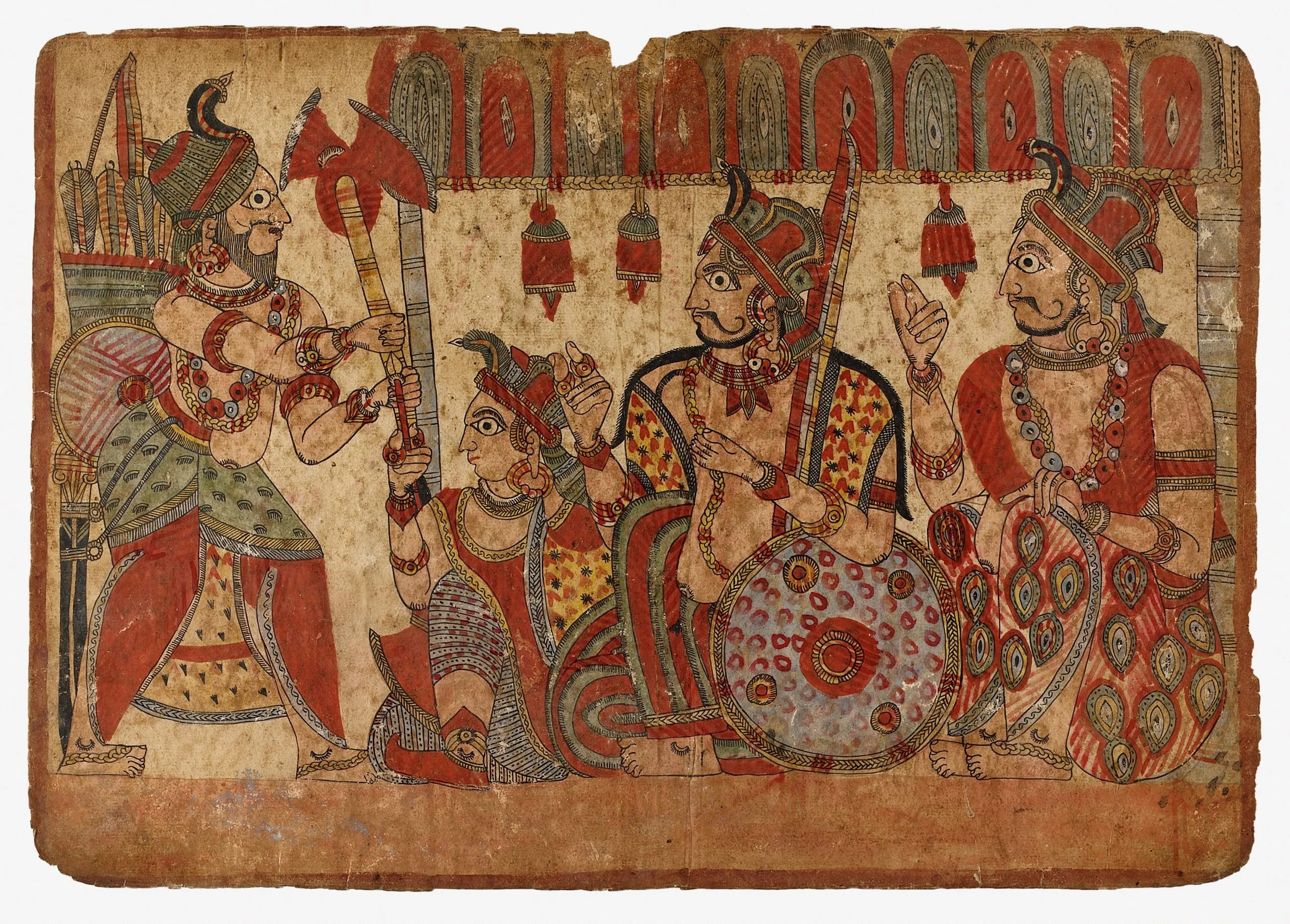 - Unidentified Scene- Disguised Ghatotkacha Arriving at Vatsala's house (?), Scene from the Story of the Marriage of Abhimanyu and Vatsala, Folio from a Mahabharata ([War of the] Great Bharatas)