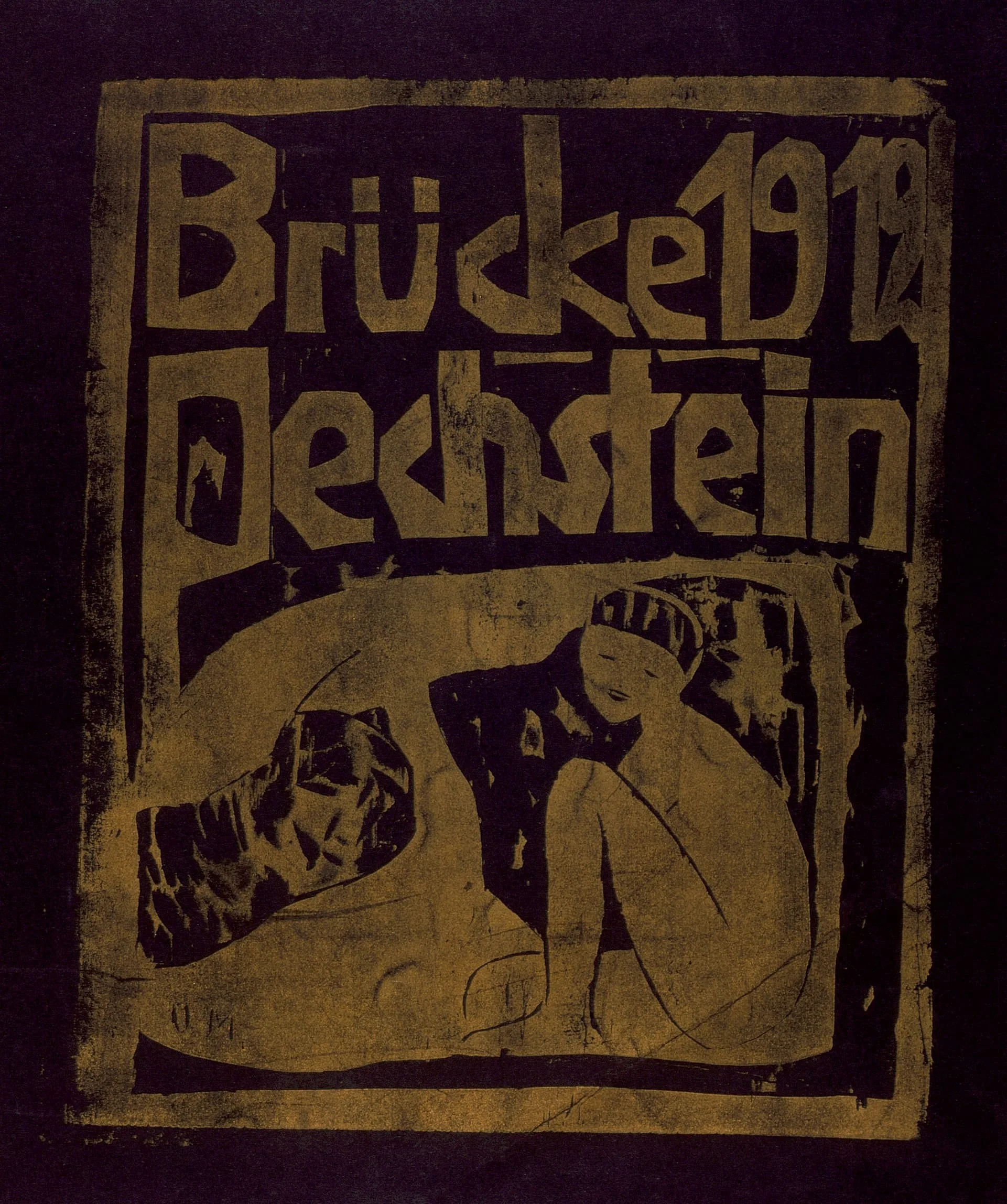 - Woodcut printed in gold and black on wove paper