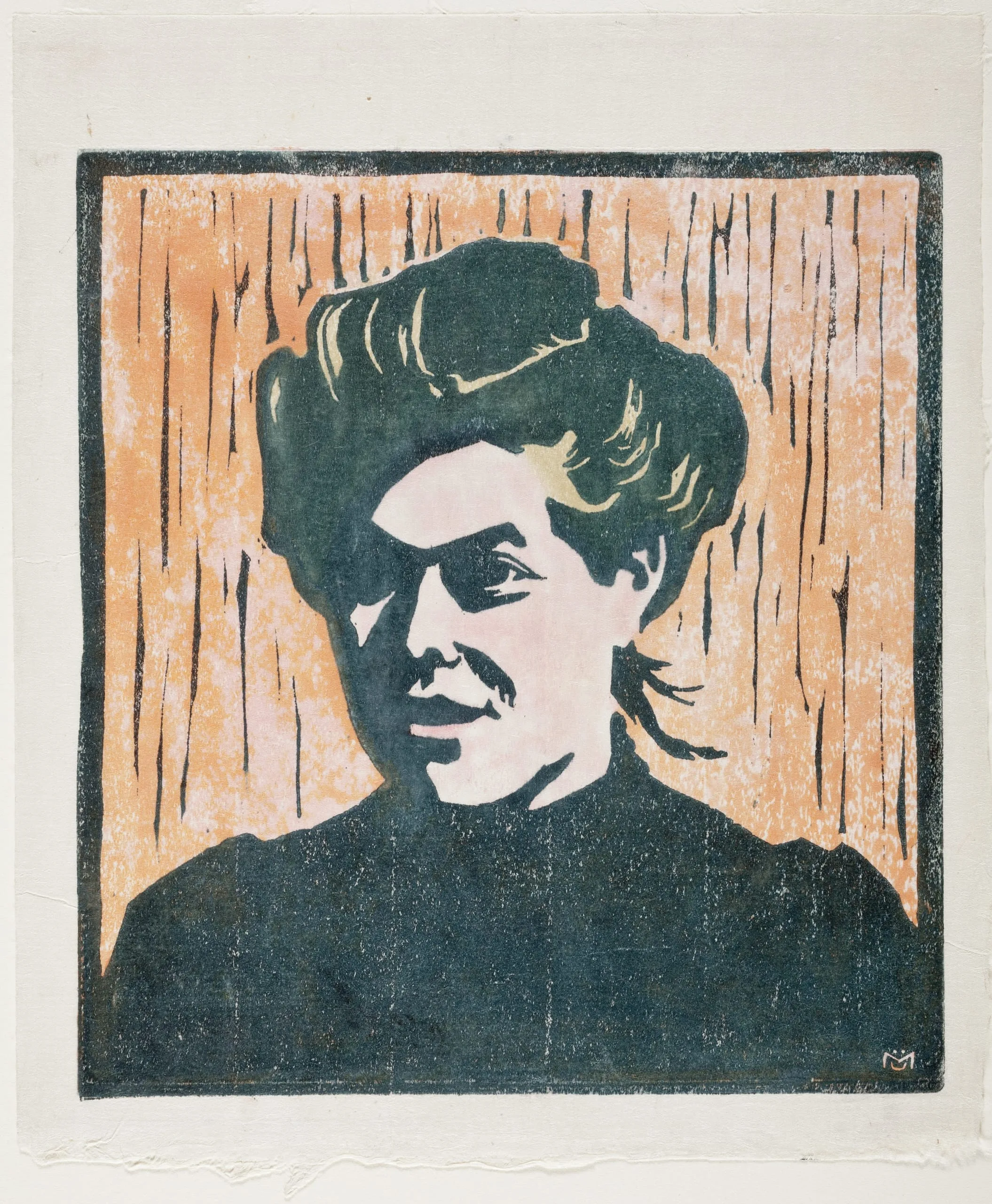 - Woodcut printed in black, orange, pink and beige on Japan paper