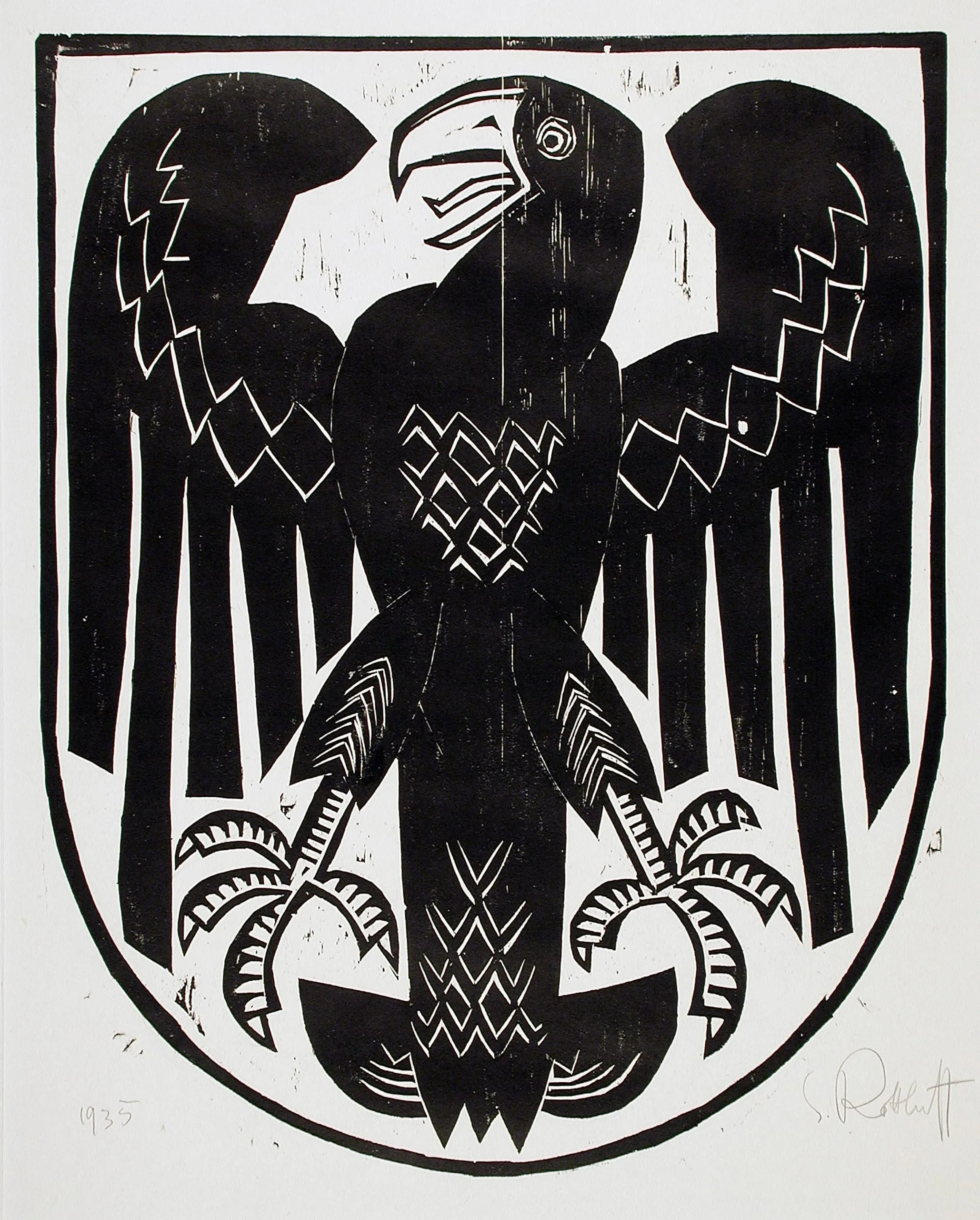 - Woodcut on gray wove paper