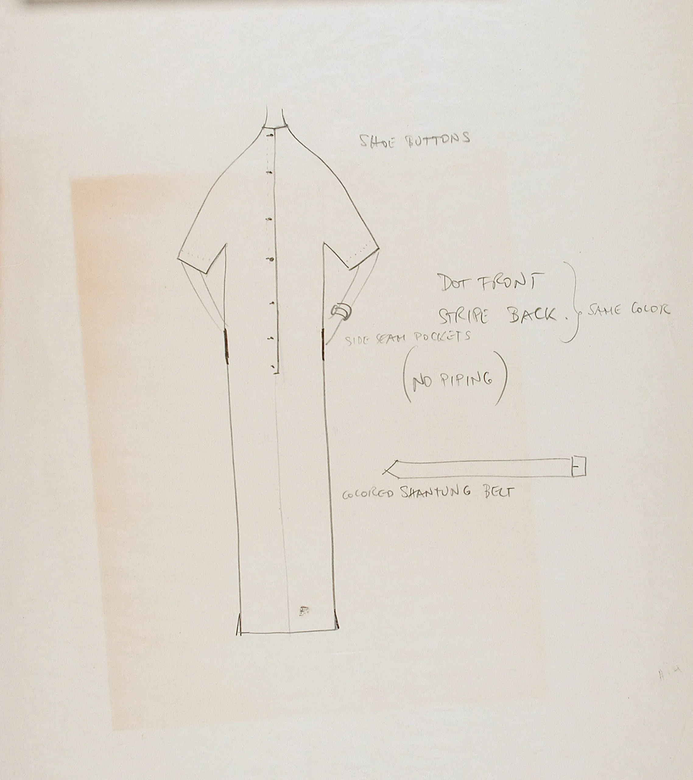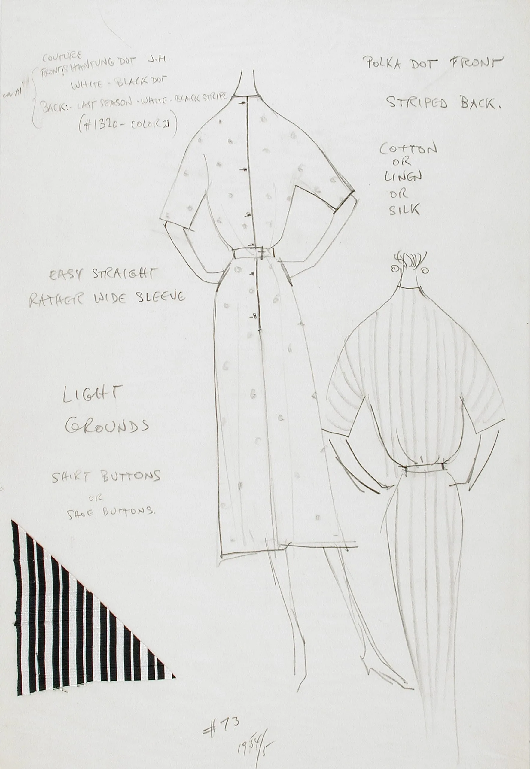 - a) Pencil on vellum with woven silk fabric swatch attached; b) Pencil on vellum