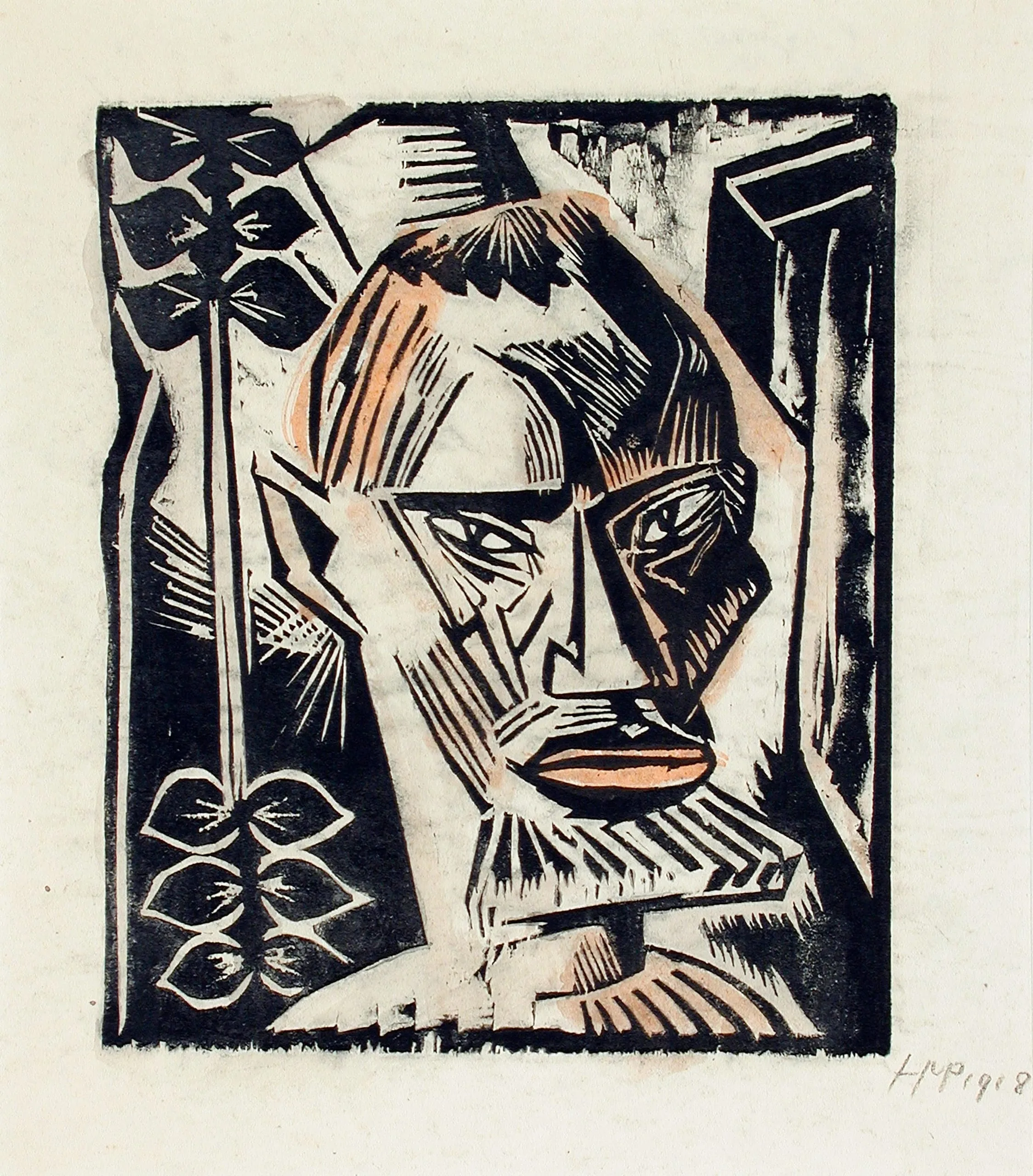 - Woodcut with orange watercolor on Japan paper