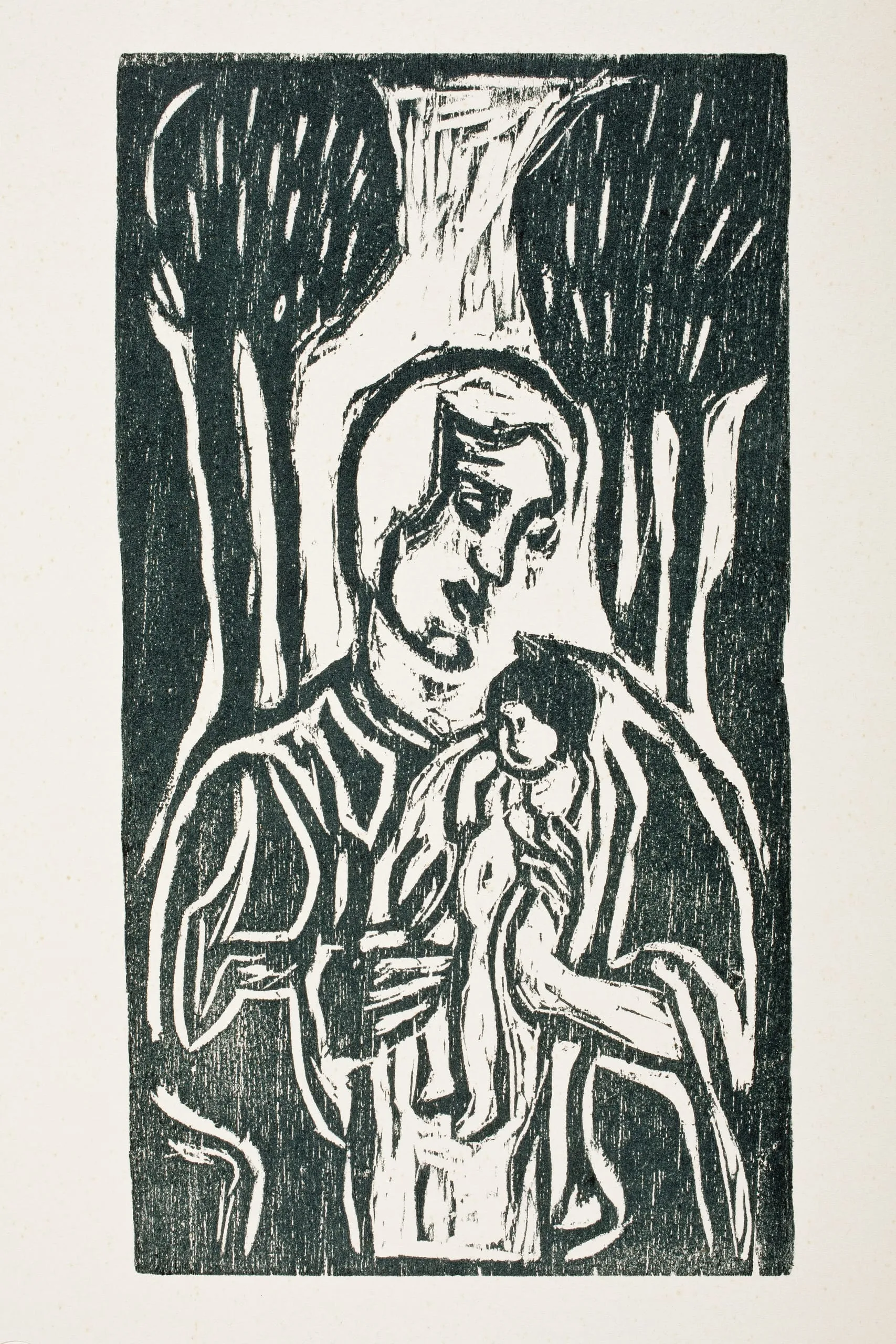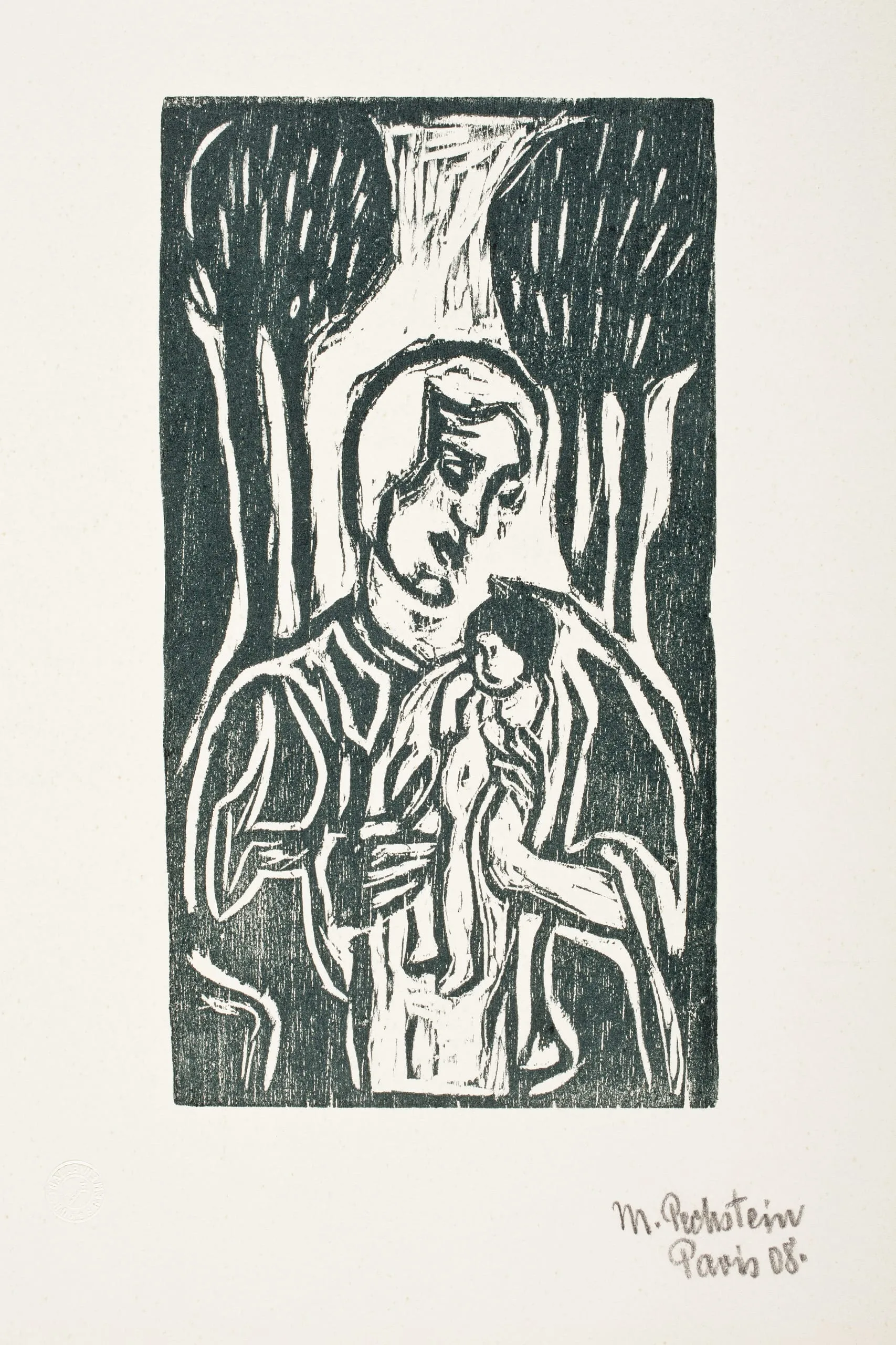 - Woodcut printed in dark green on heavy wove paper