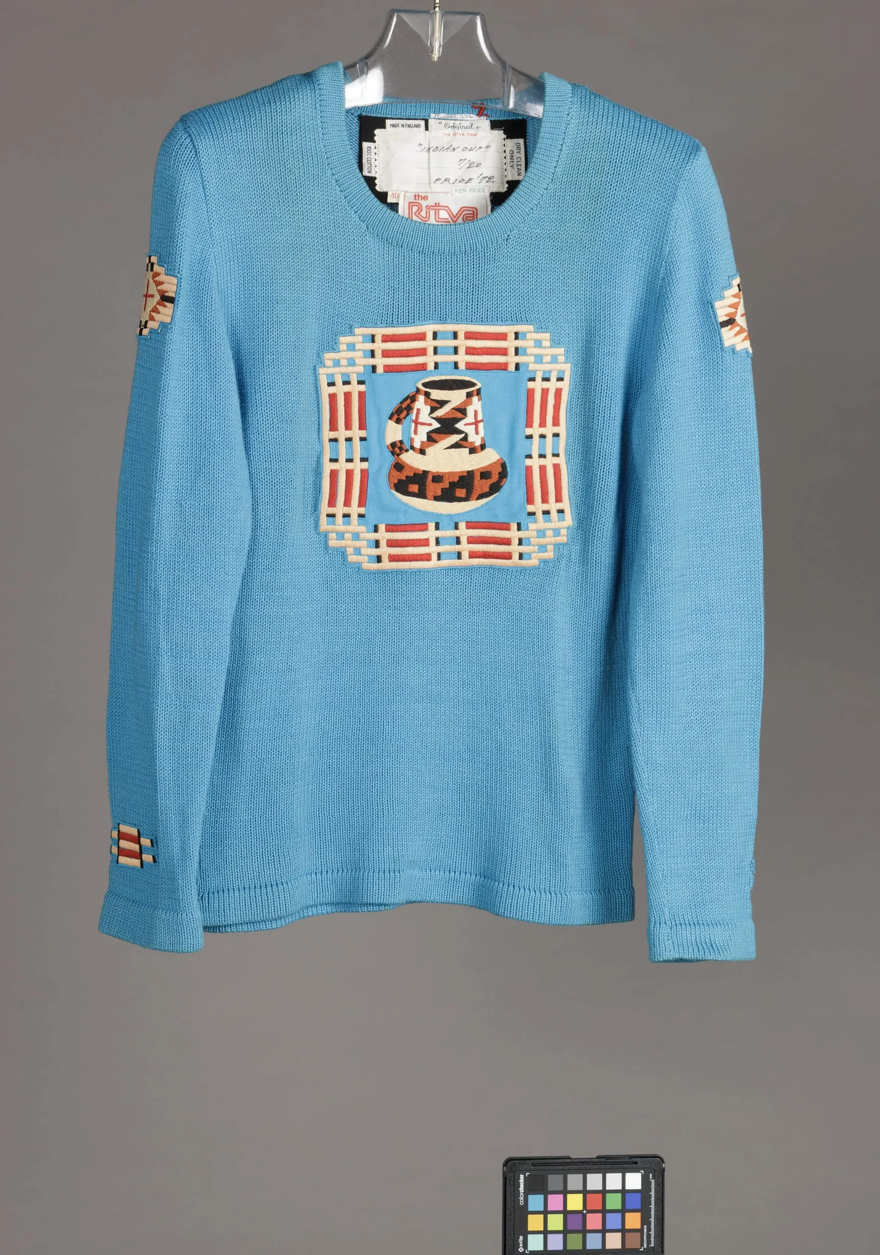 - Cotton knit with cotton plain weave and rayon embroidery appliqués
