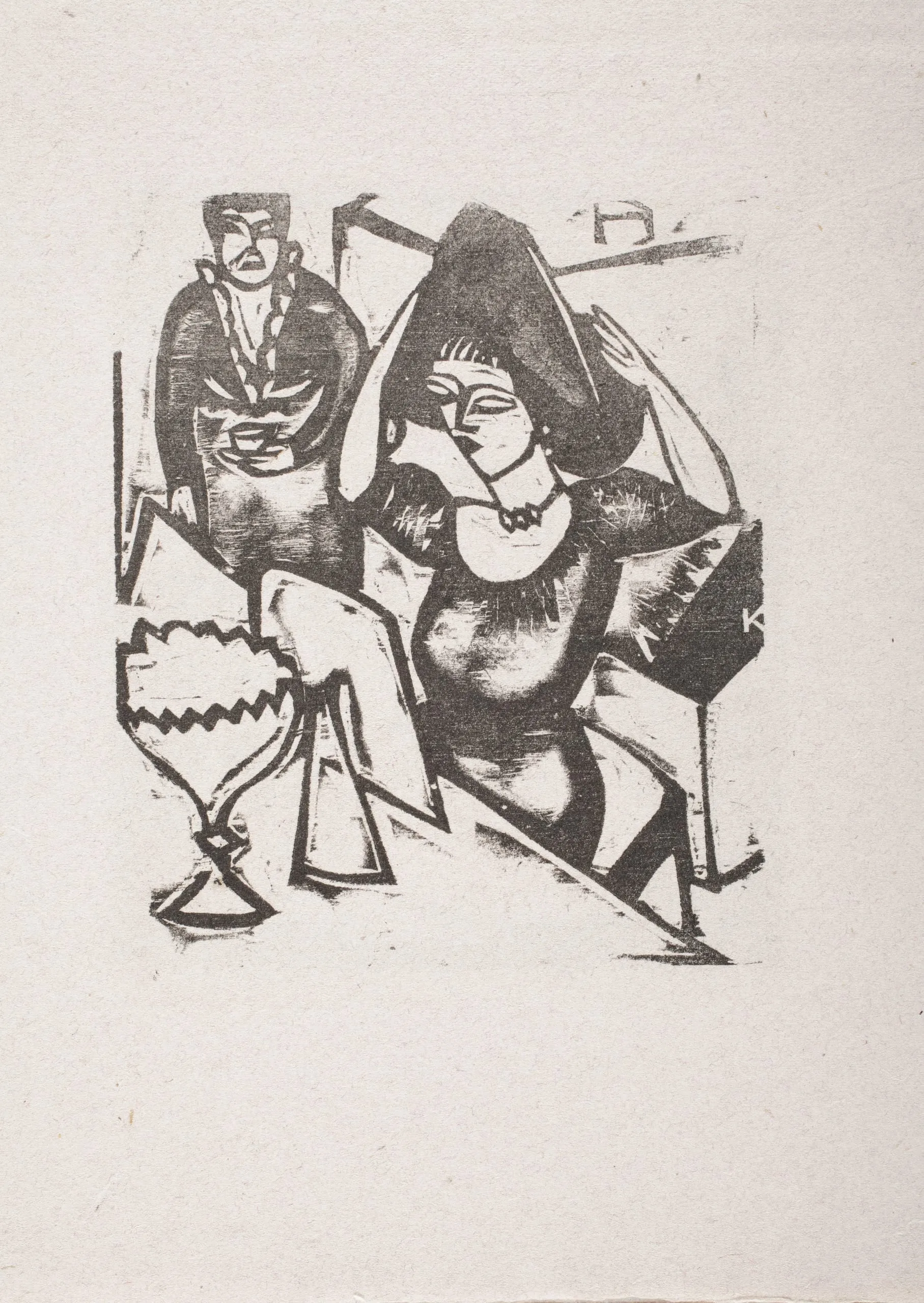 - Woodcut on thin pink wove paper