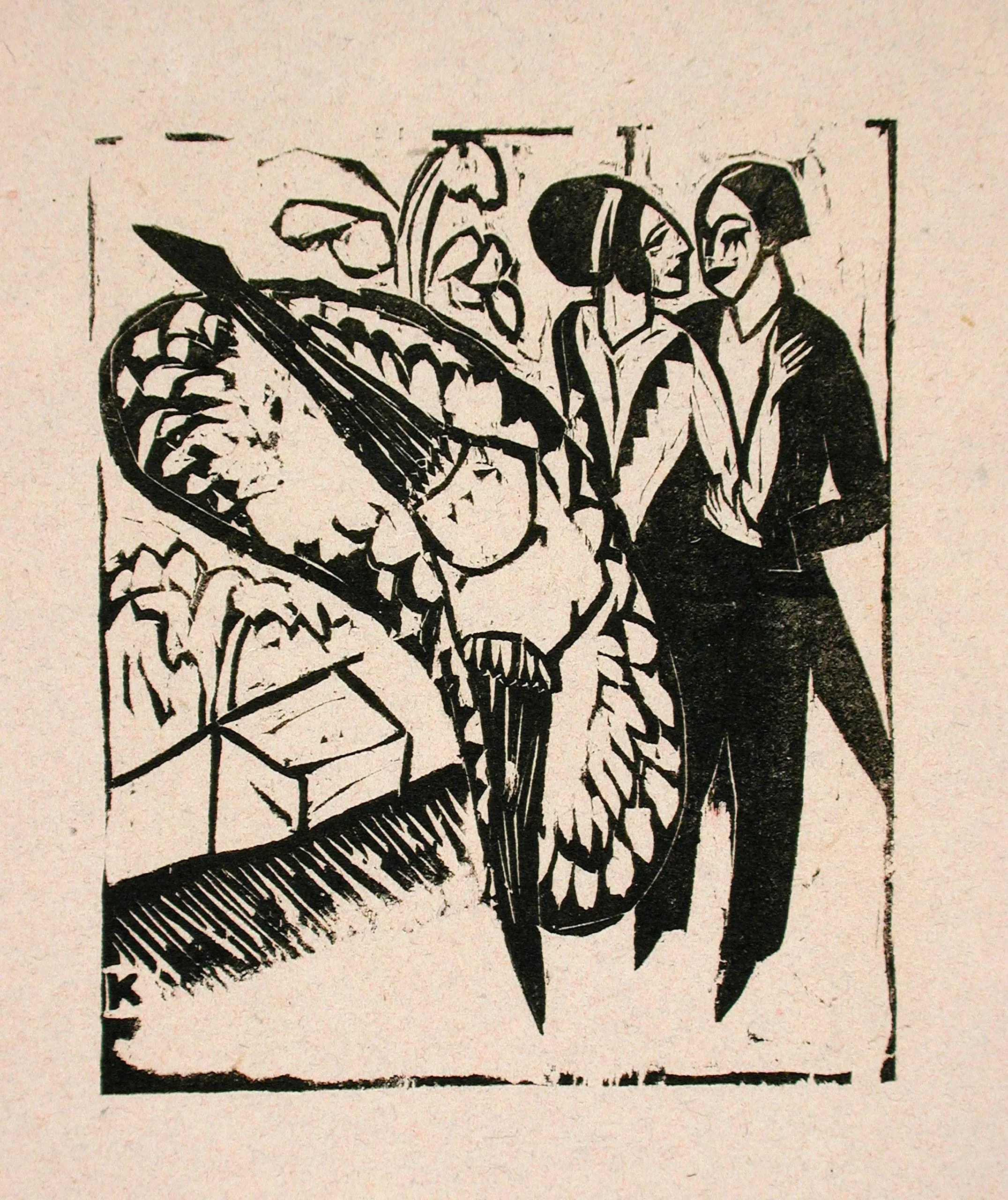 - Woodcut on thin pink wove paper