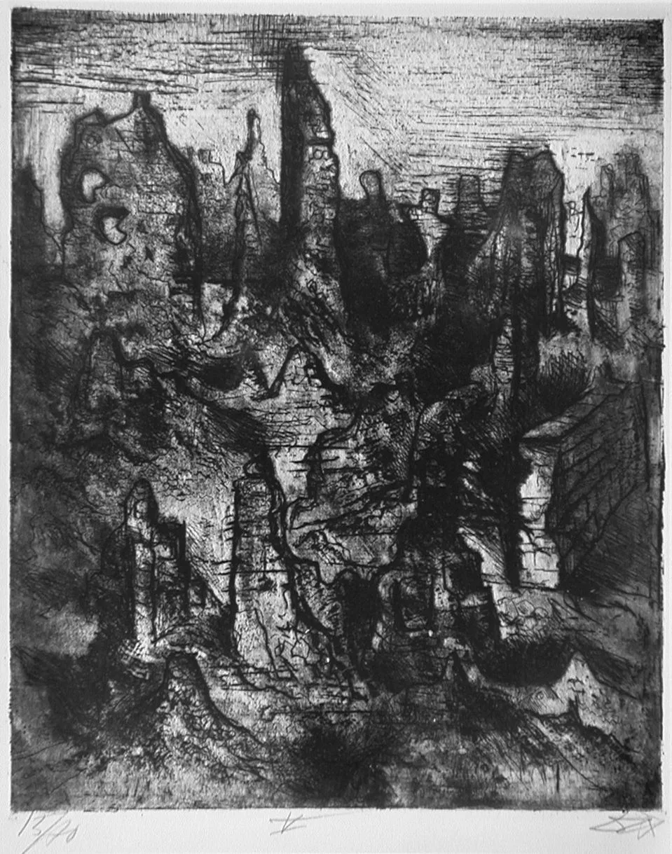 - Etching and aquatint on laid paper