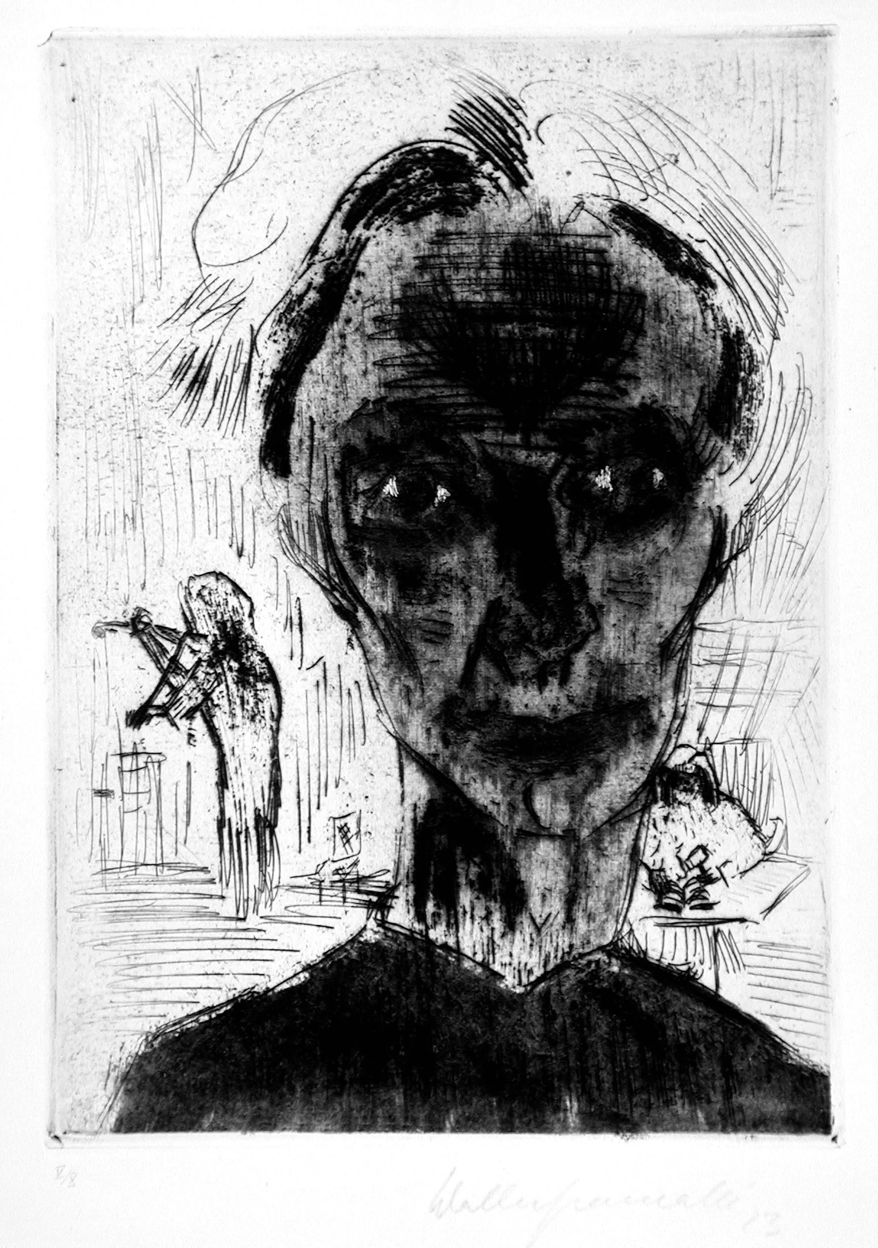 - Etching with aquatint printed in brown and green on Japan paper