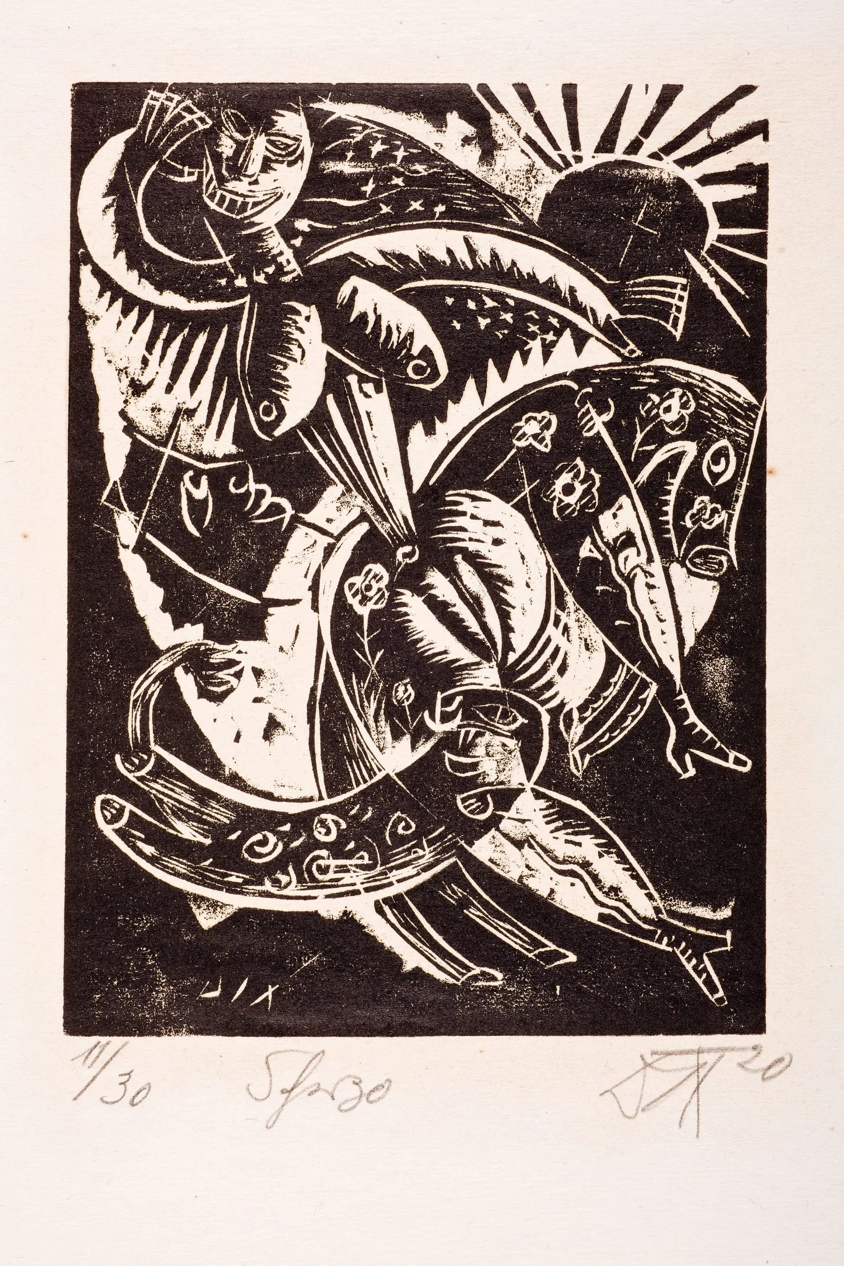 - Woodcut on laid paper