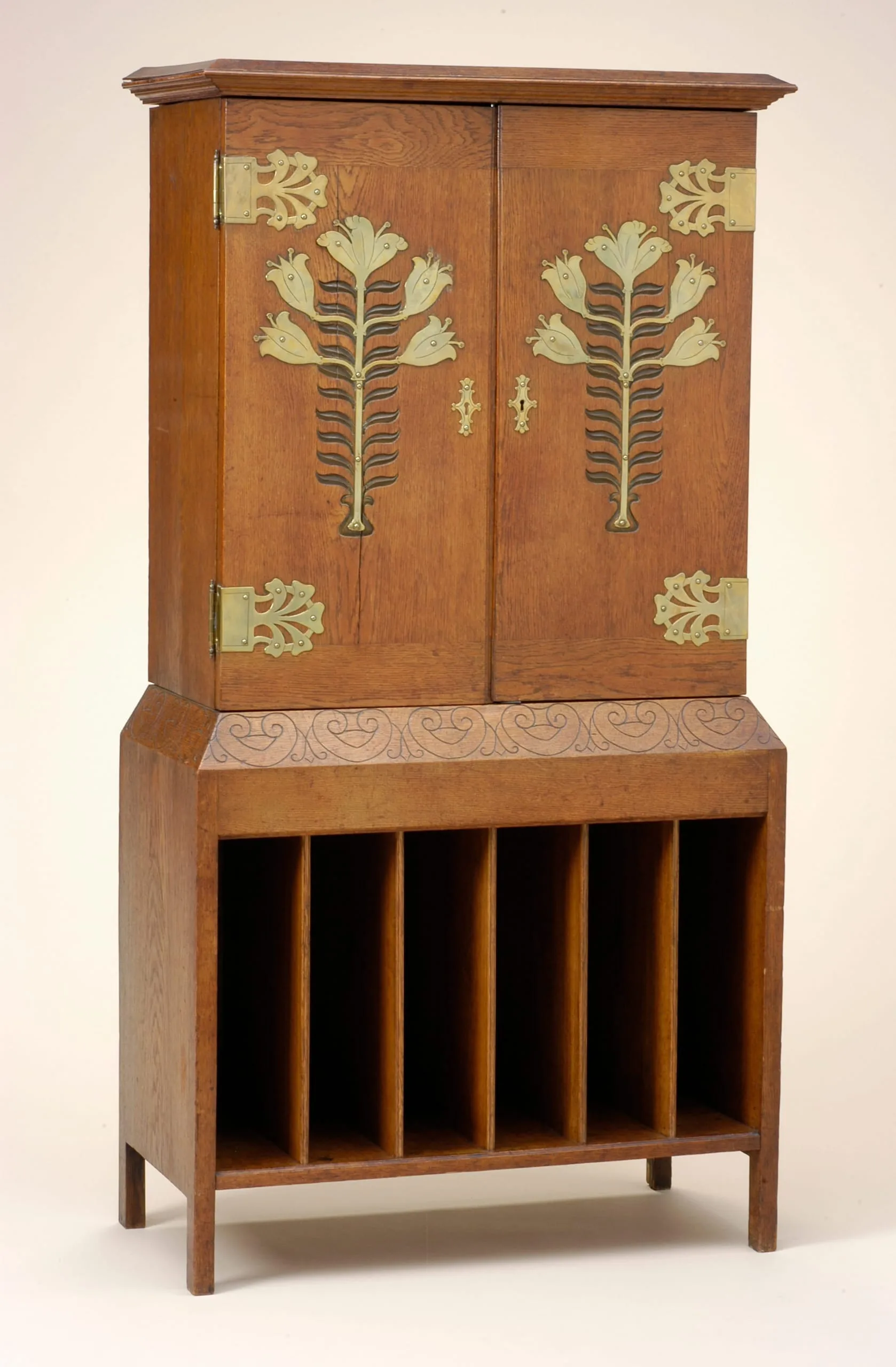 - Oak, pine, and brass