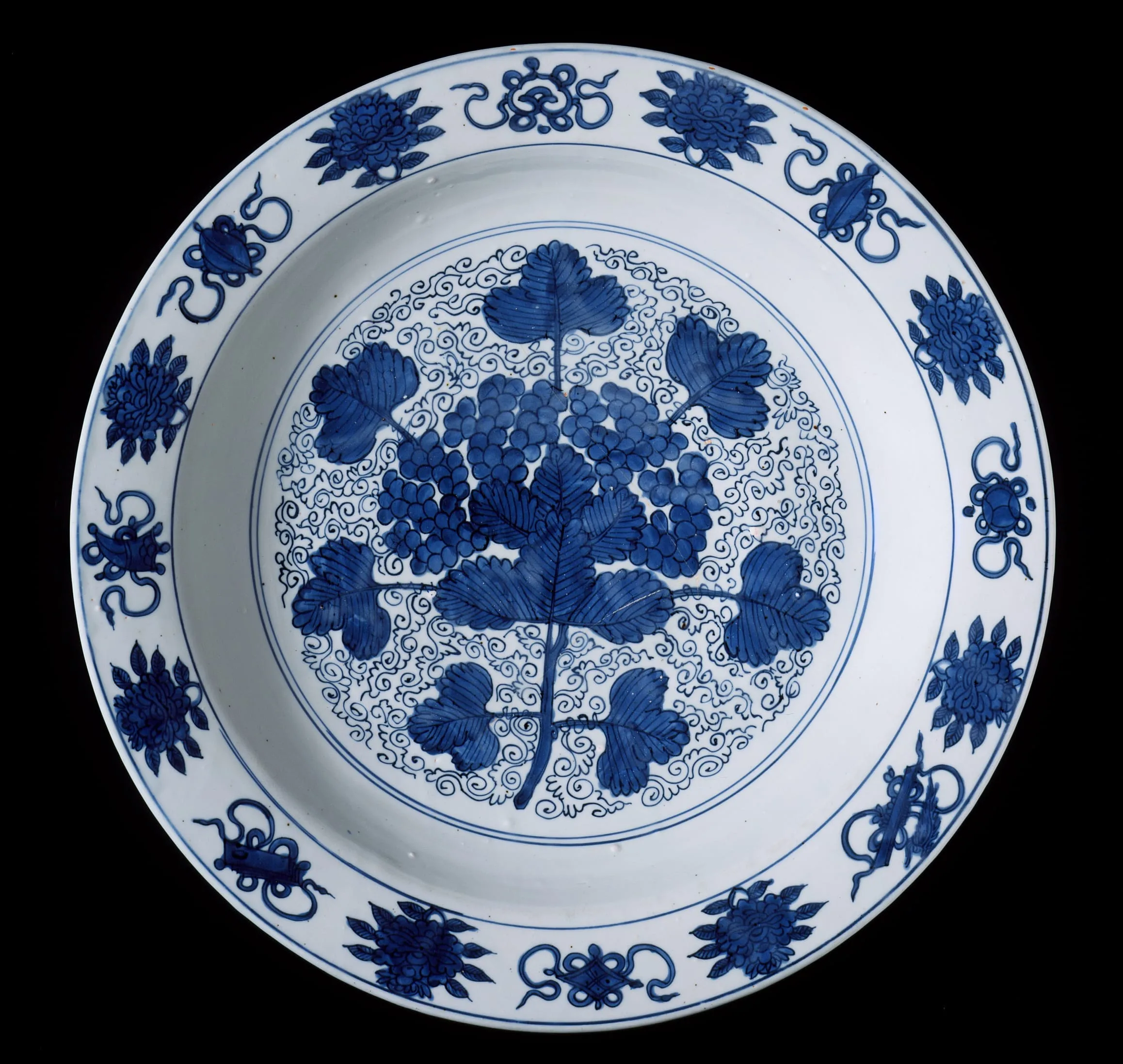 - Dish (Pan) with Grape Spray, Eight Auspicious Symbols, and Rosettes
