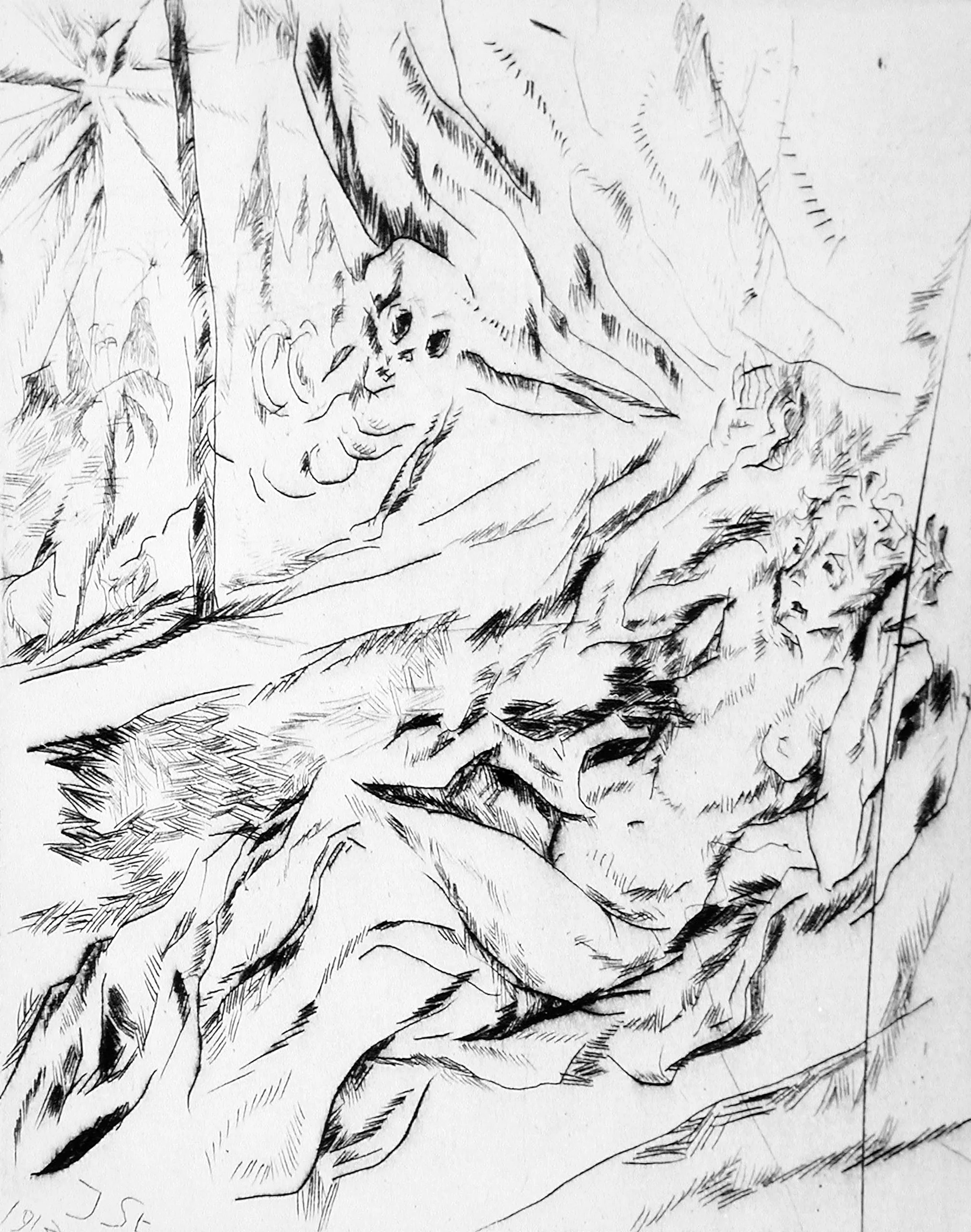 - Drypoint on laid paper
