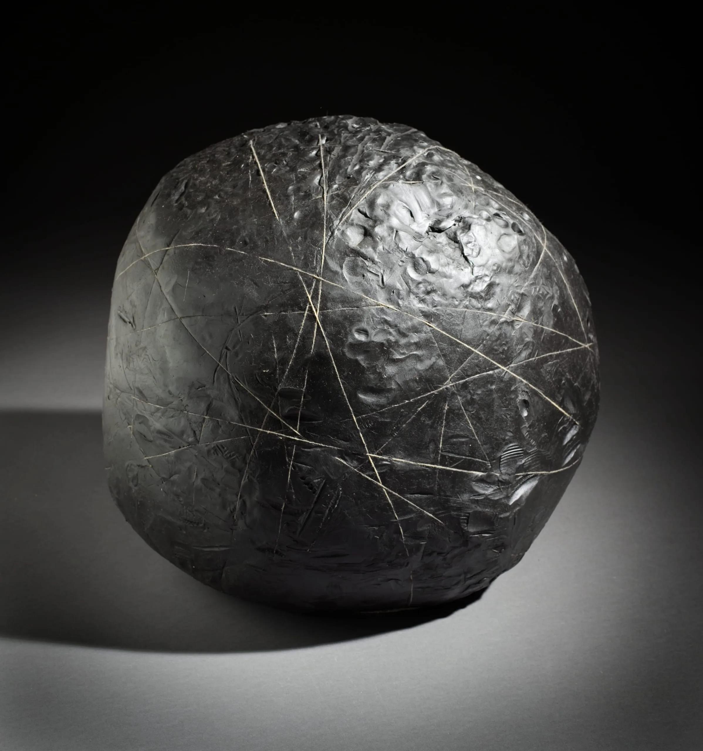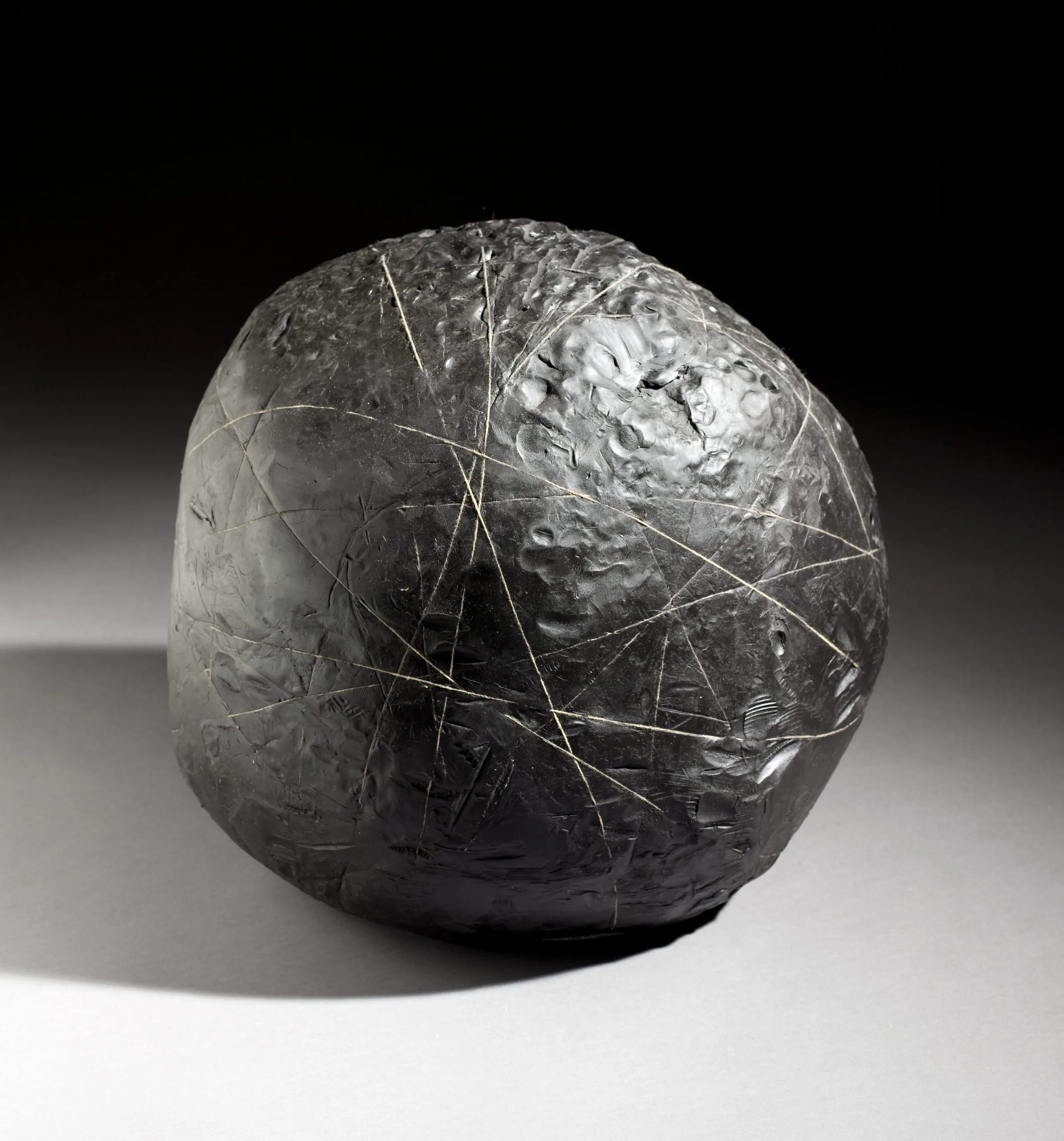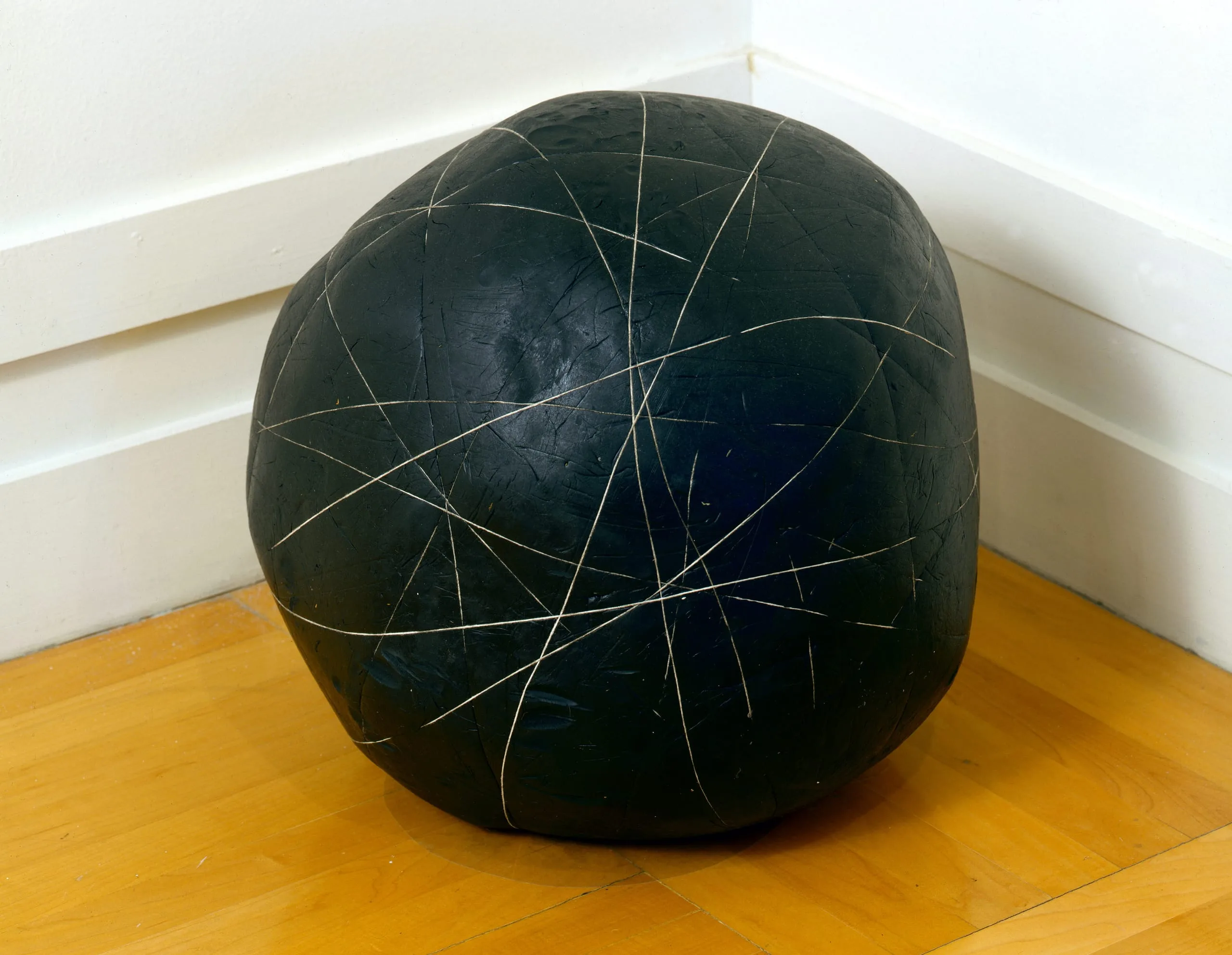 Impermanence is a central aspect of much of Gabriel Orozco's art. Some of his works are made of objects found on the street, which the artist reconfigures and then records in still photographs. Lost Line, in contrast, is a continuously shifting form. Made of plasticine, a type of clay that cannot be baked, and interlayered with wound string, this sculpture—both repellant and alluring—will subtly change over time. (Ilona Katzew, 2008)