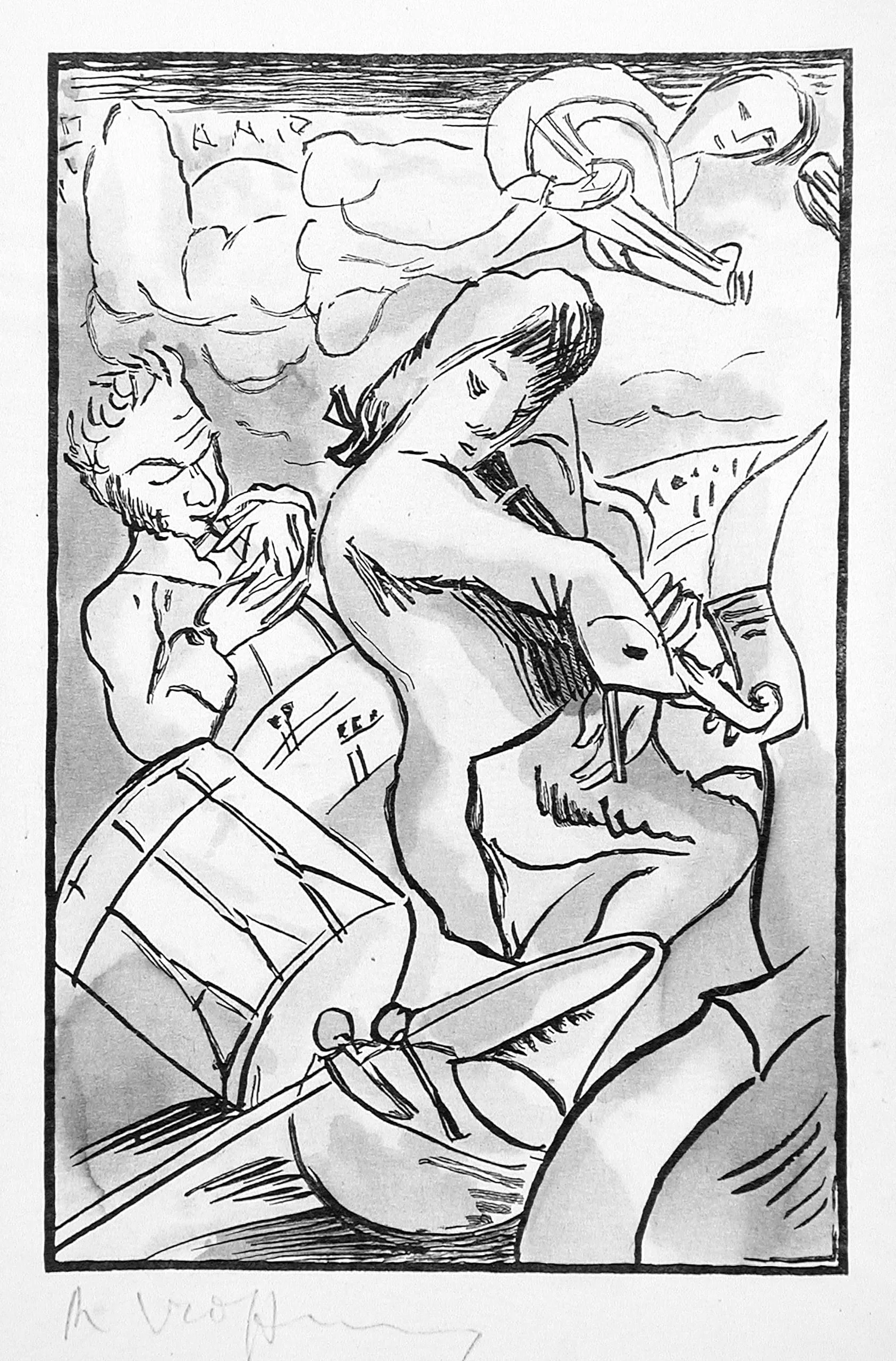 - Woodcut with watercolor on Japan paper