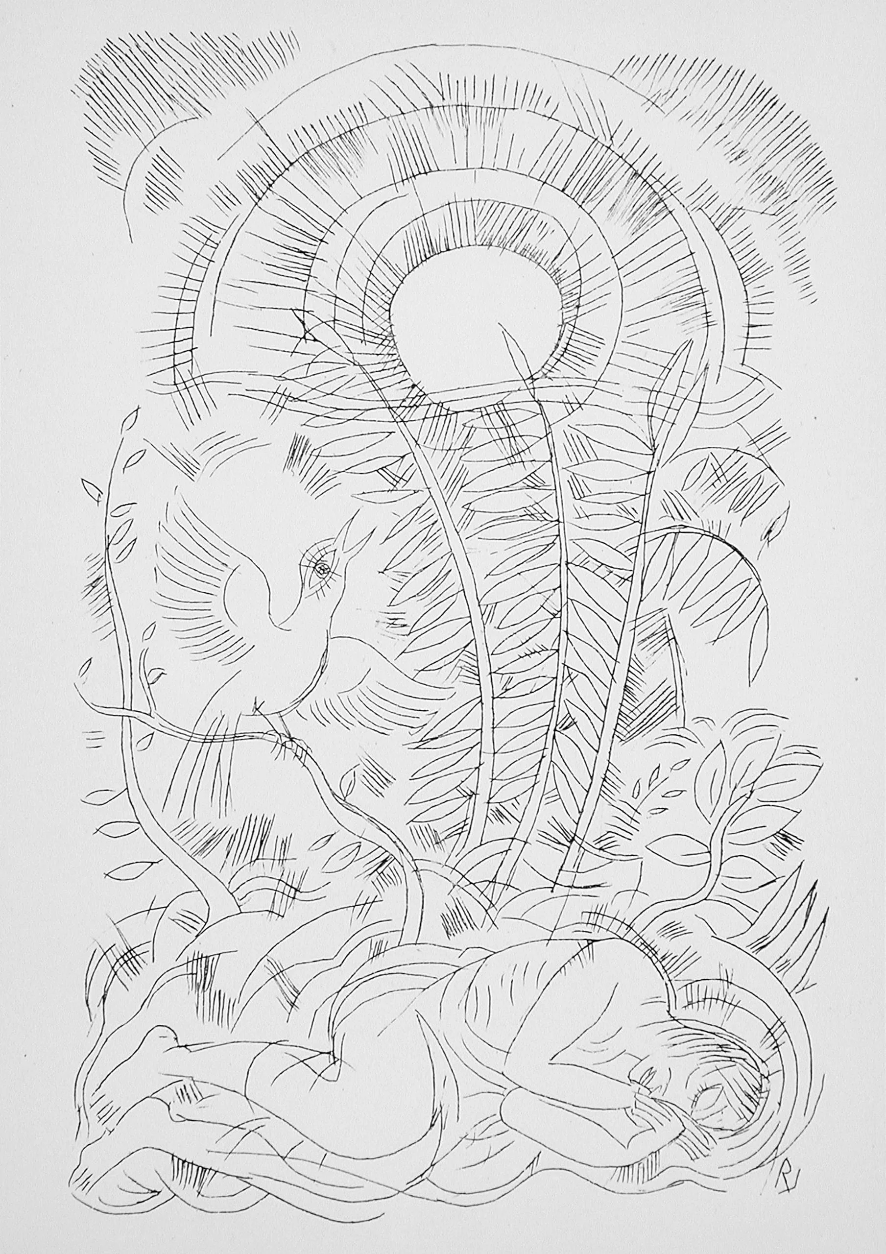 - Lithograph on laid paper