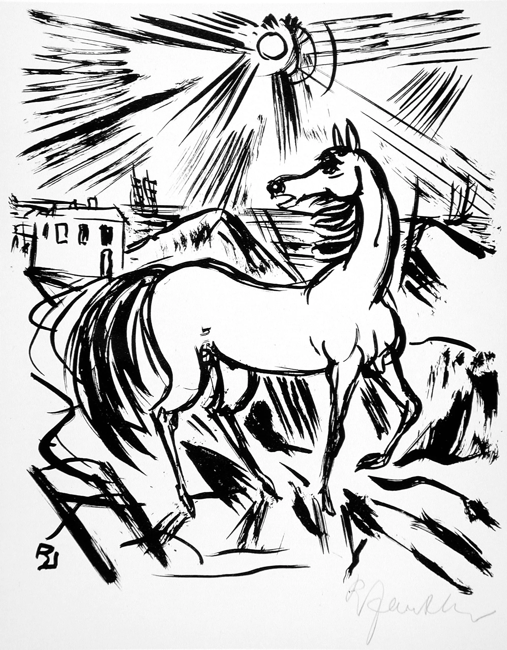 - Lithograph on laid paper