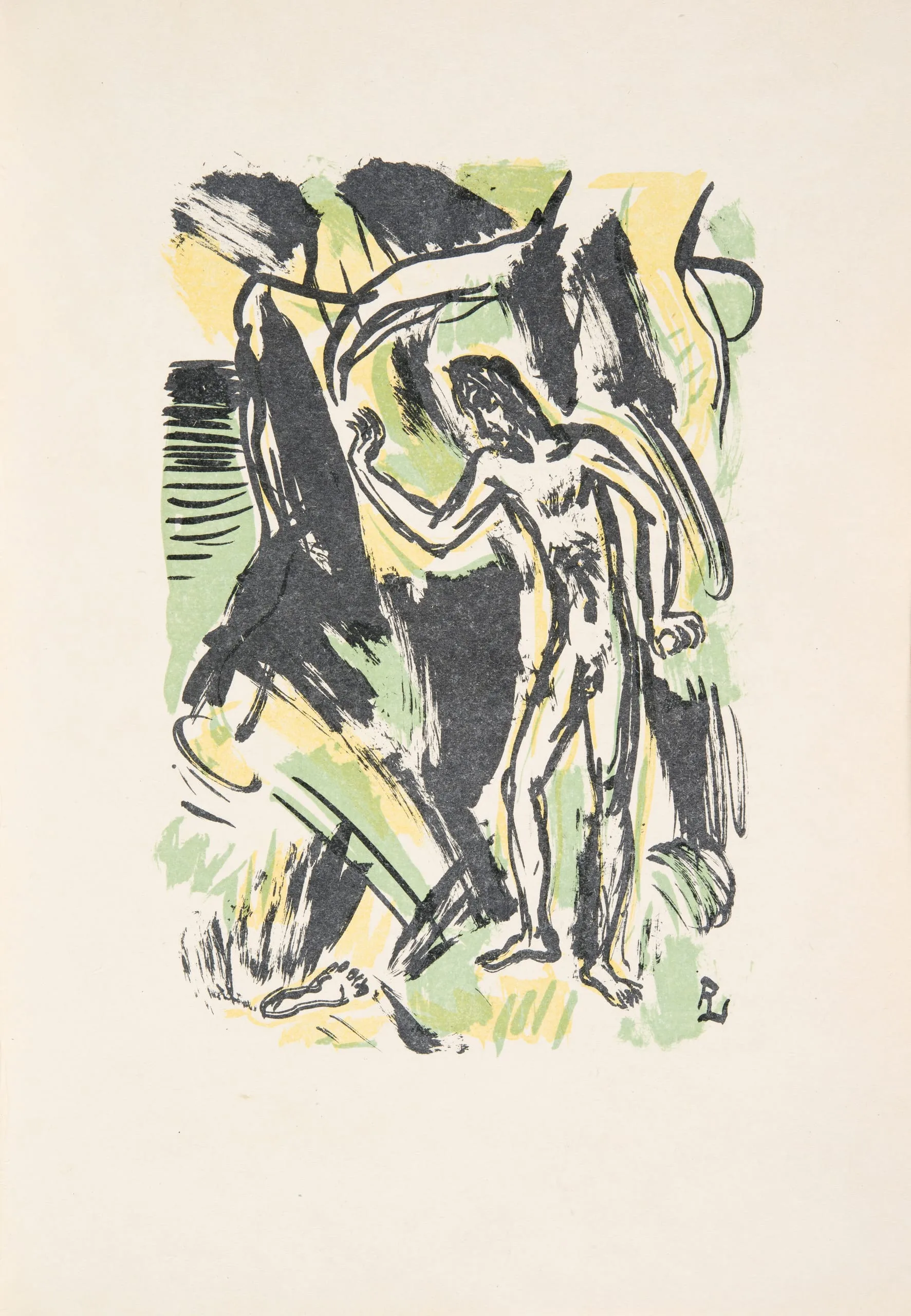 - Lithograph printed in black, yellow and green on Japan paper