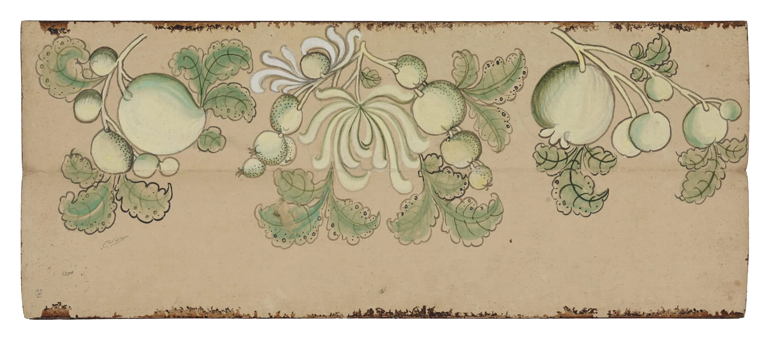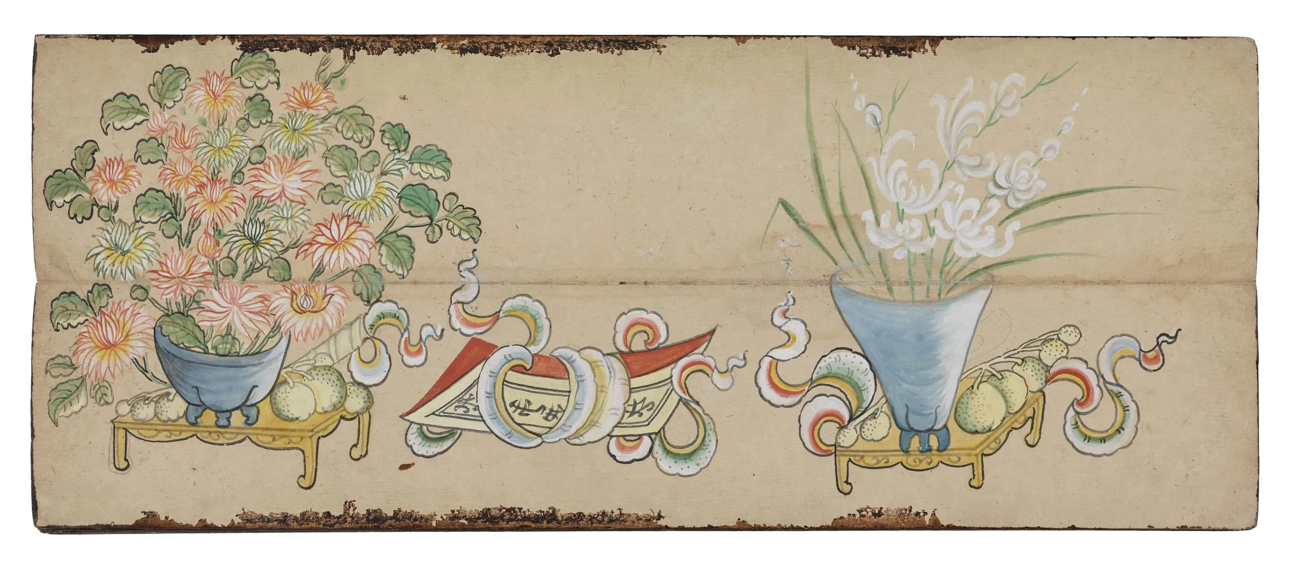 - Opaque watercolor and ink on paper; Covers: gilded and lacquered paper