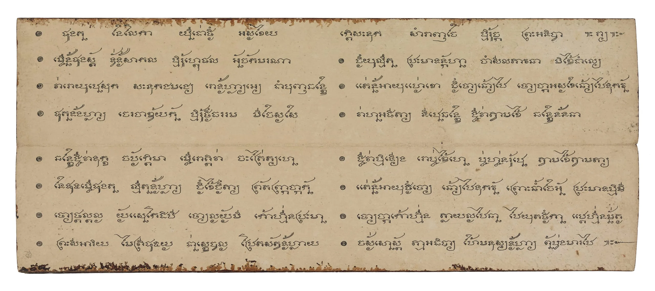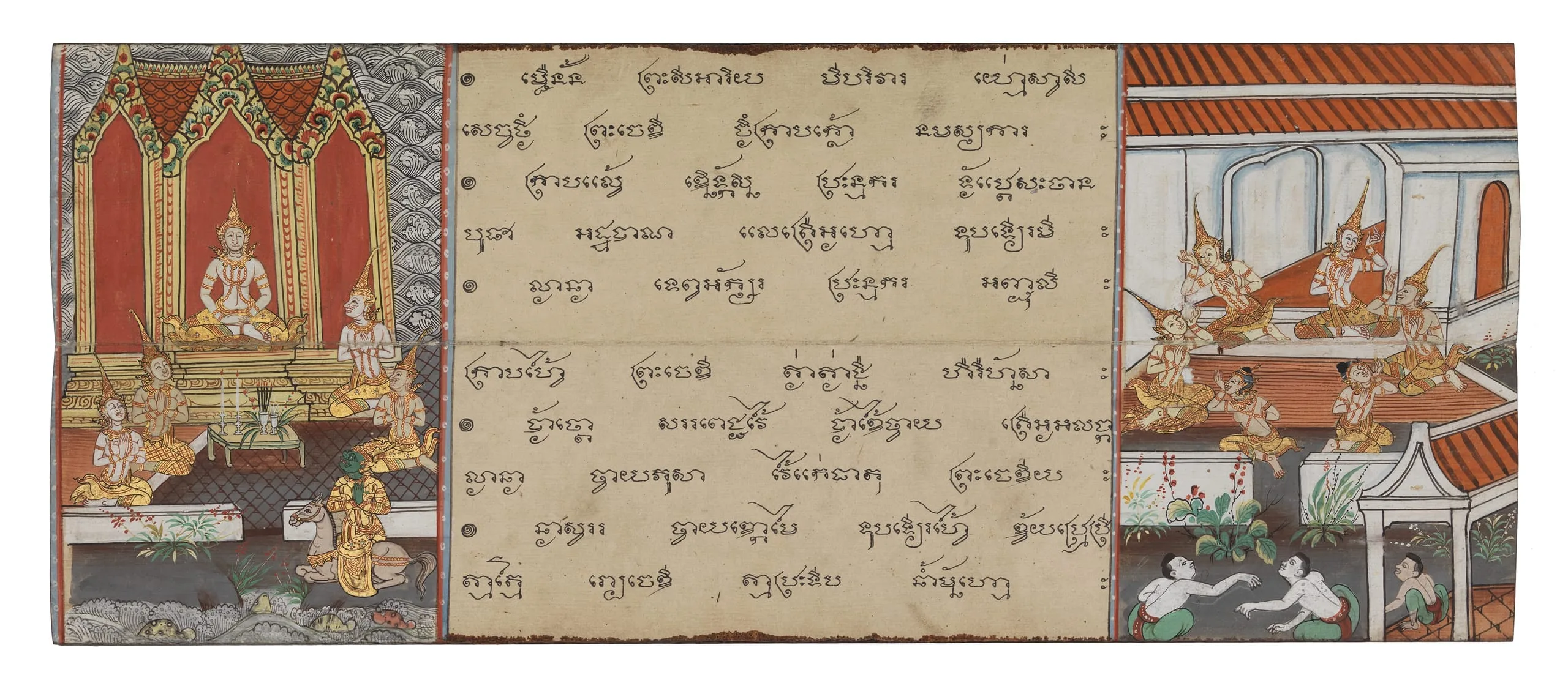 This Buddhist manuscript combines some tales of the past lives of the Buddha (Jatakas) with the account of the Sri Lankan monk Arhat Maliyadeva (2nd century BCE), who is known as Phra Malai in Thailand. The monk is said to have attained supernatural powers through his accumulated merit and meditation. His story was one of the most popular themes in 19th-century Thai Theravada literature and was often recited at funerals.