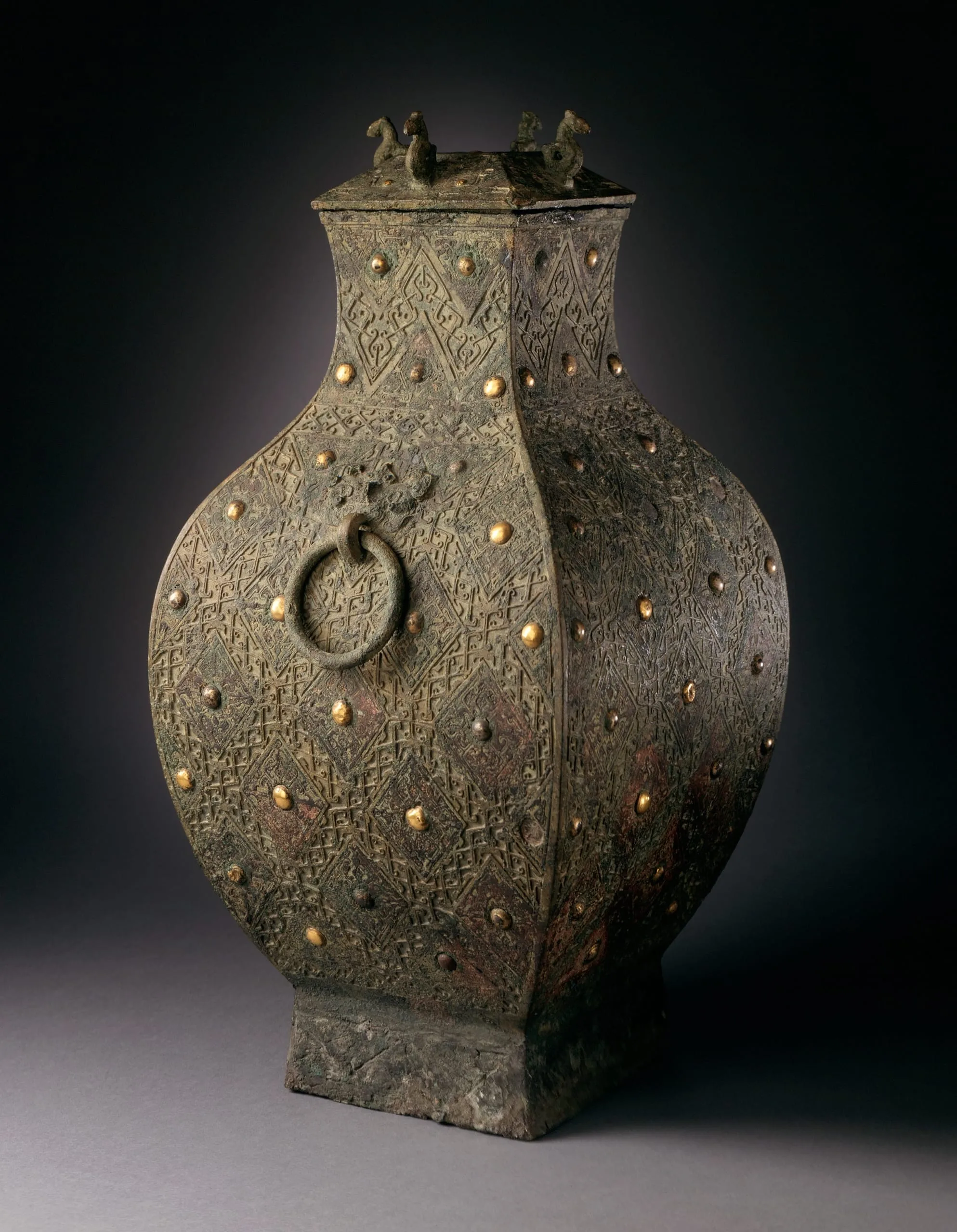 - Lidded Square Wine Storage Jar (Fanghu) with Lozenges and Knobs