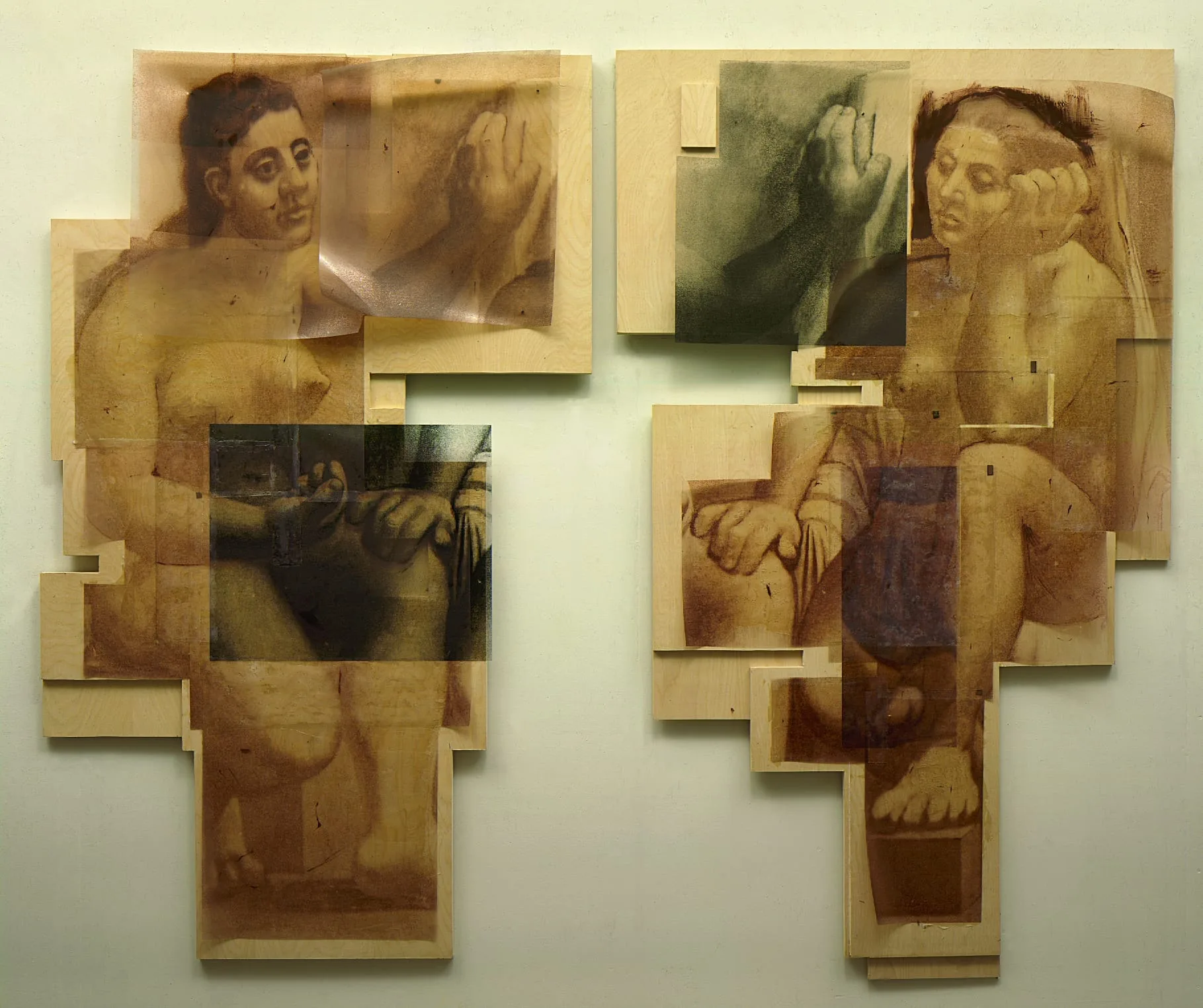 - Toned ortho film, glue, wood, silicone, and acrylic