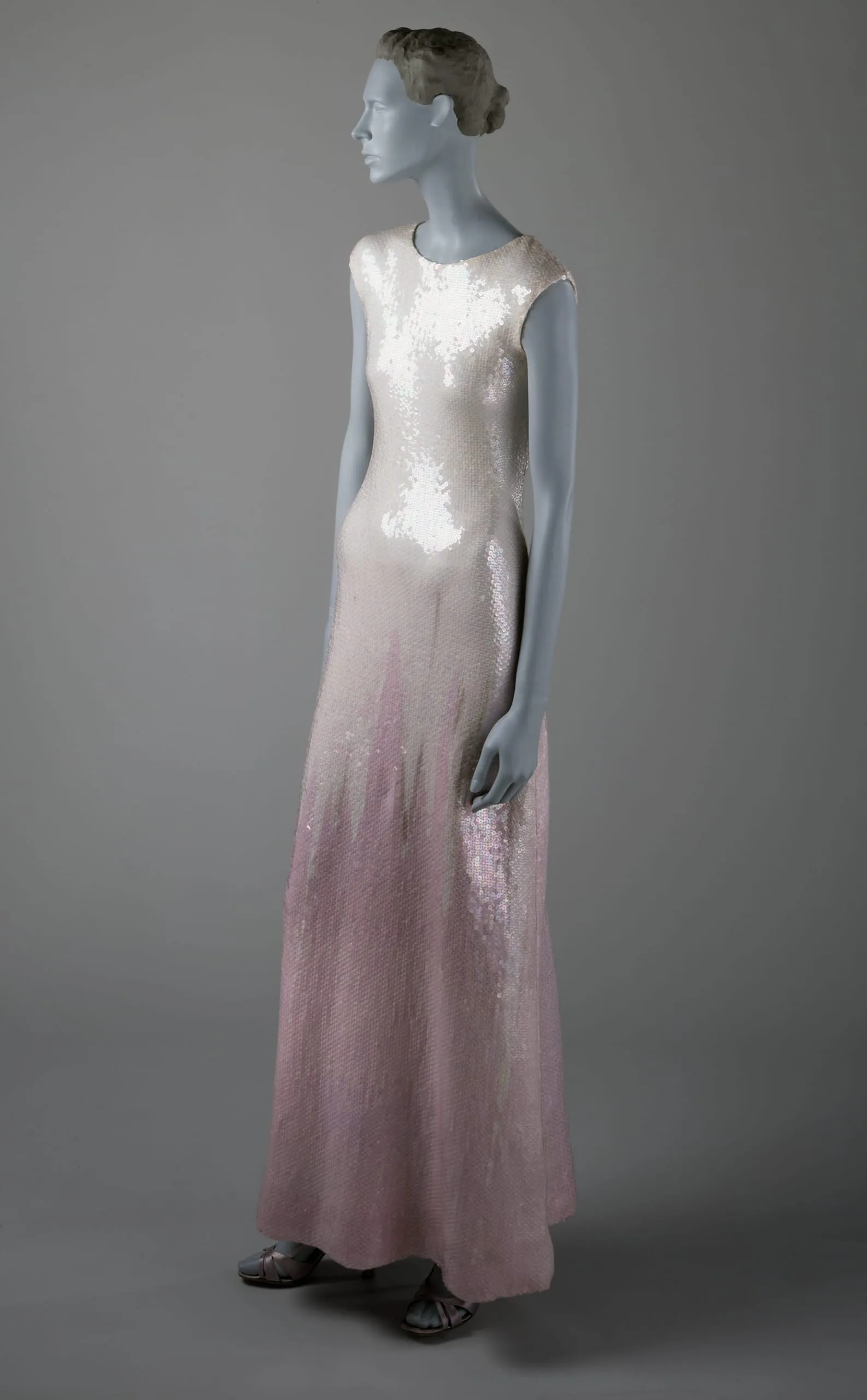 - Silk knit (jersey), printed, with plastic sequins.