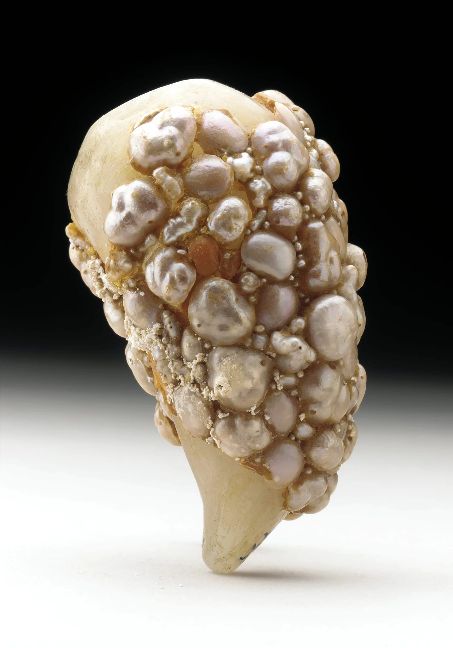 - Jade foundation with blister pearls and gray-green jade stopper