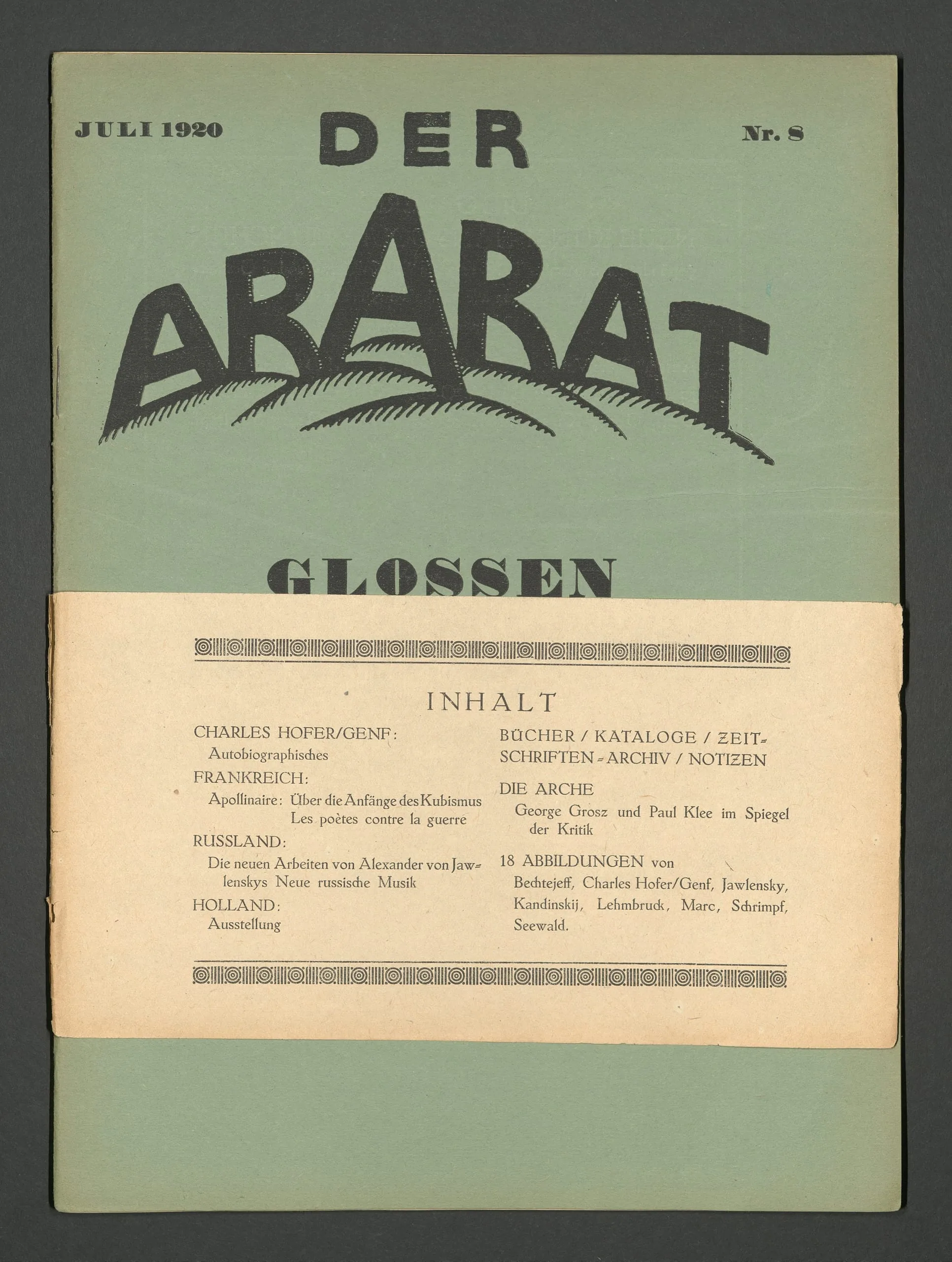 Der Ararat, Jg. 1, Nr. 8 (Juli 1920); Glossen, Skizzen und Notizen zur neuen Kunst