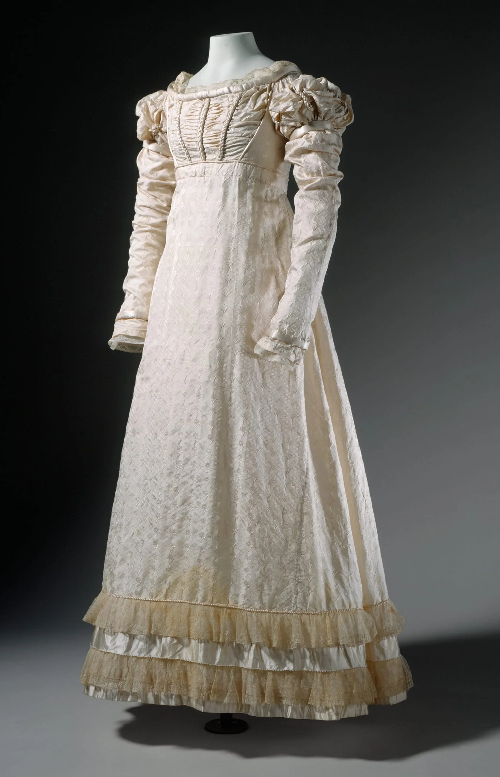 - Silk plain weave with supplementary warp and weft patterning, silk lace and silk satin ribbon
