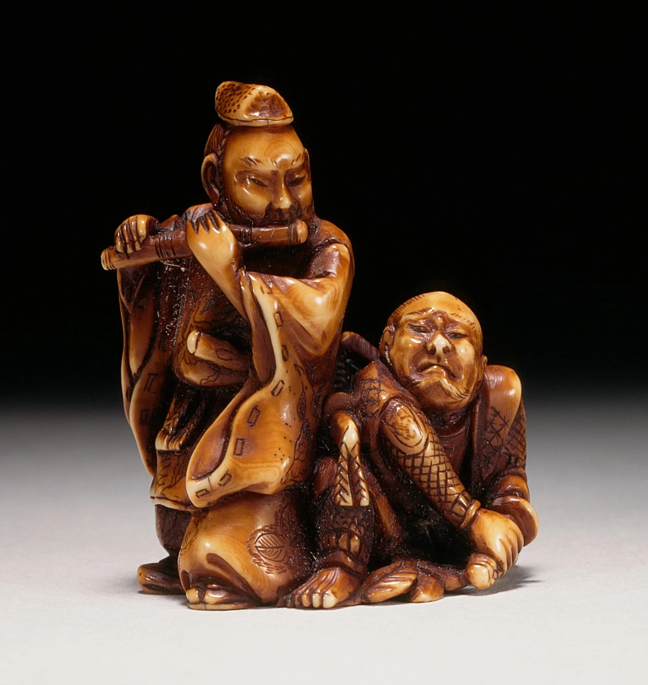 - Ivory with dark staining, sumi