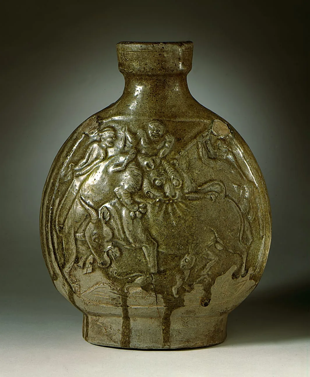 - Flask (Bianhu) with a Lion Attacking an Ox