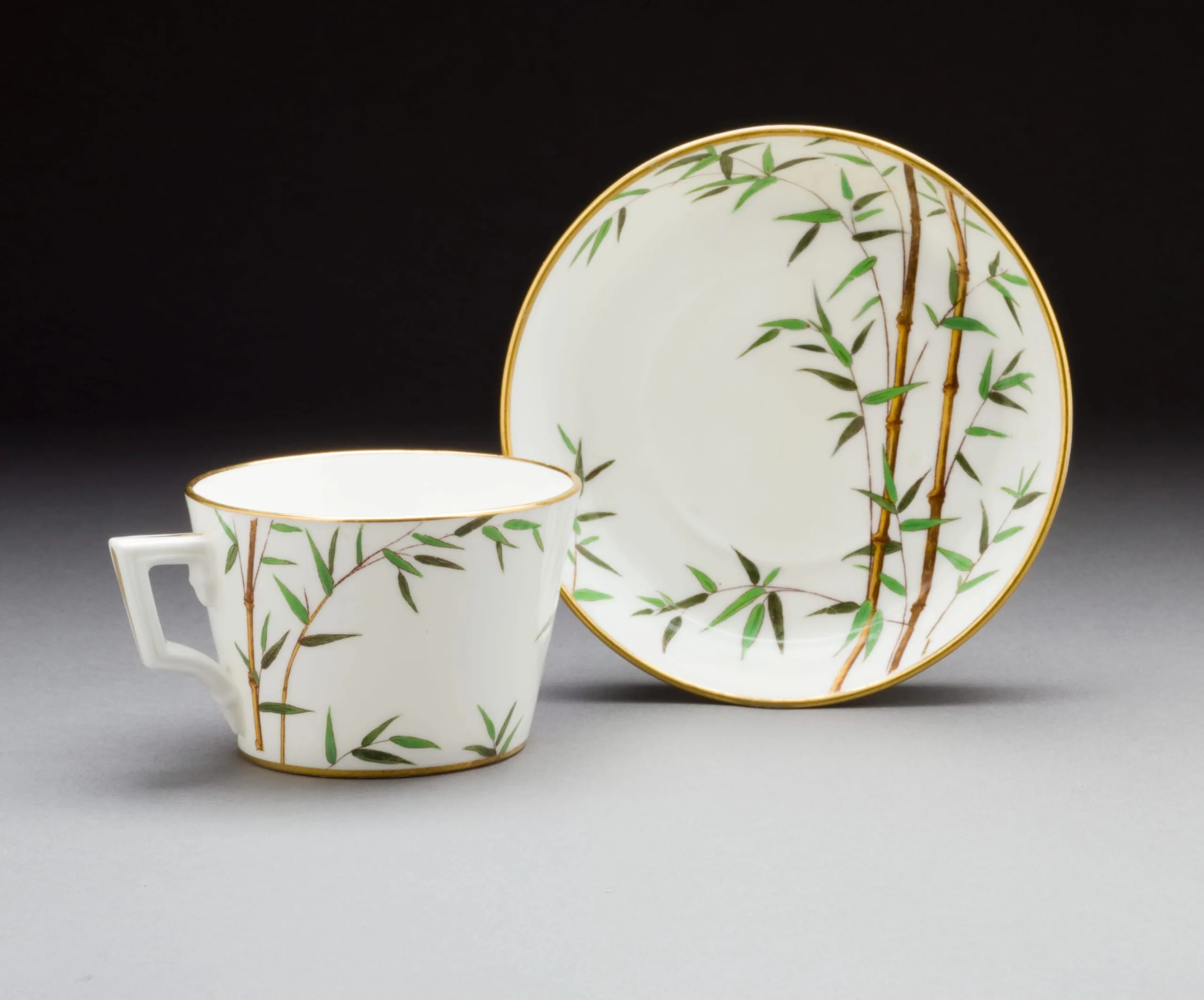 - Cup height: 2 1/16 in. (5.24 cm), Diameter: 3 1/16 in. (7.78 cm); Saucer height: 1 in. (2.54 cm), Diameter: 4 3/4 in. (12.07 cm)