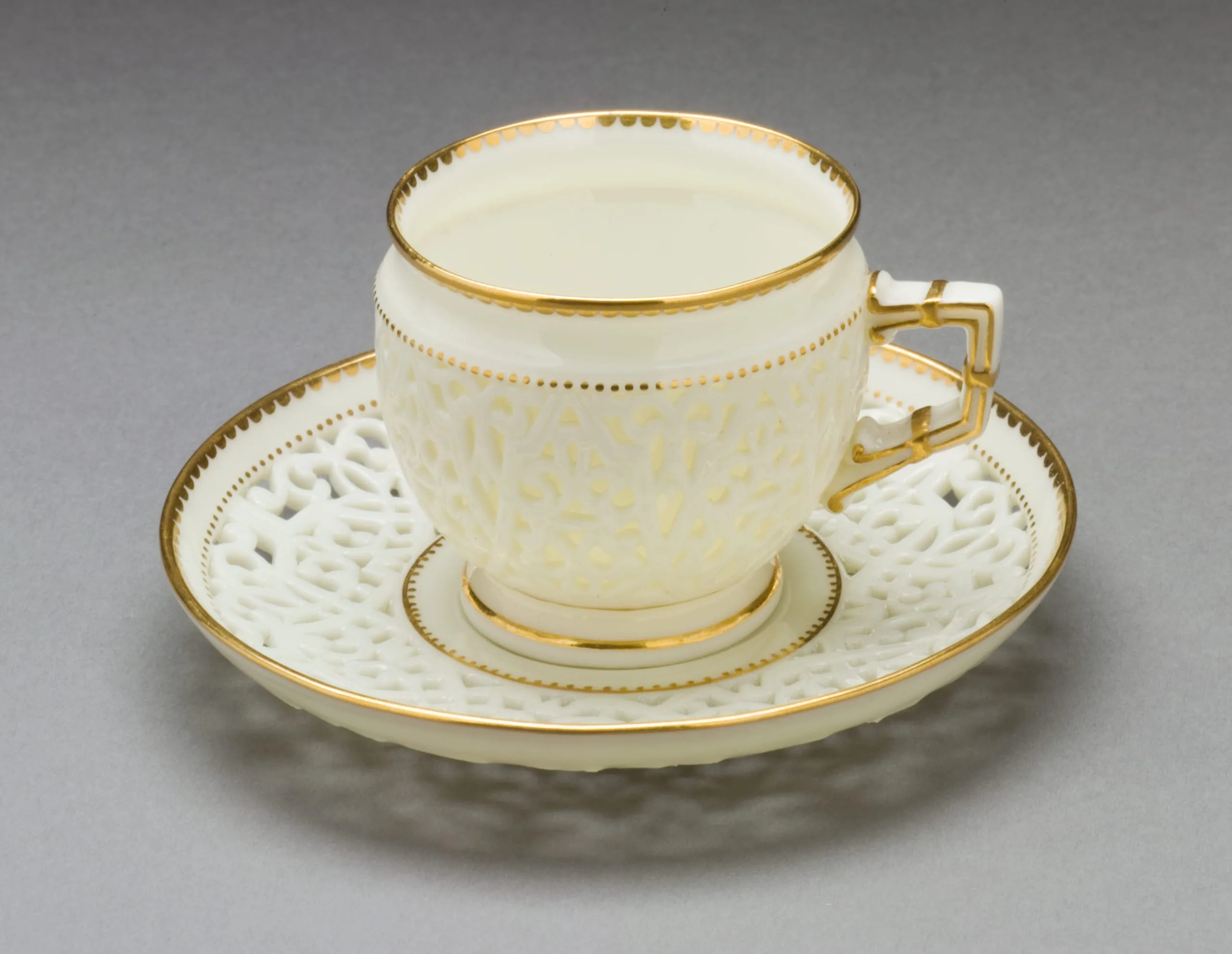 - Cup height: 2 1/8 in. (5.4 cm), Diameter: 1 7/8 in. (4.76 cm); Saucer diameter: 4 1/4 in. (10.8 cm)