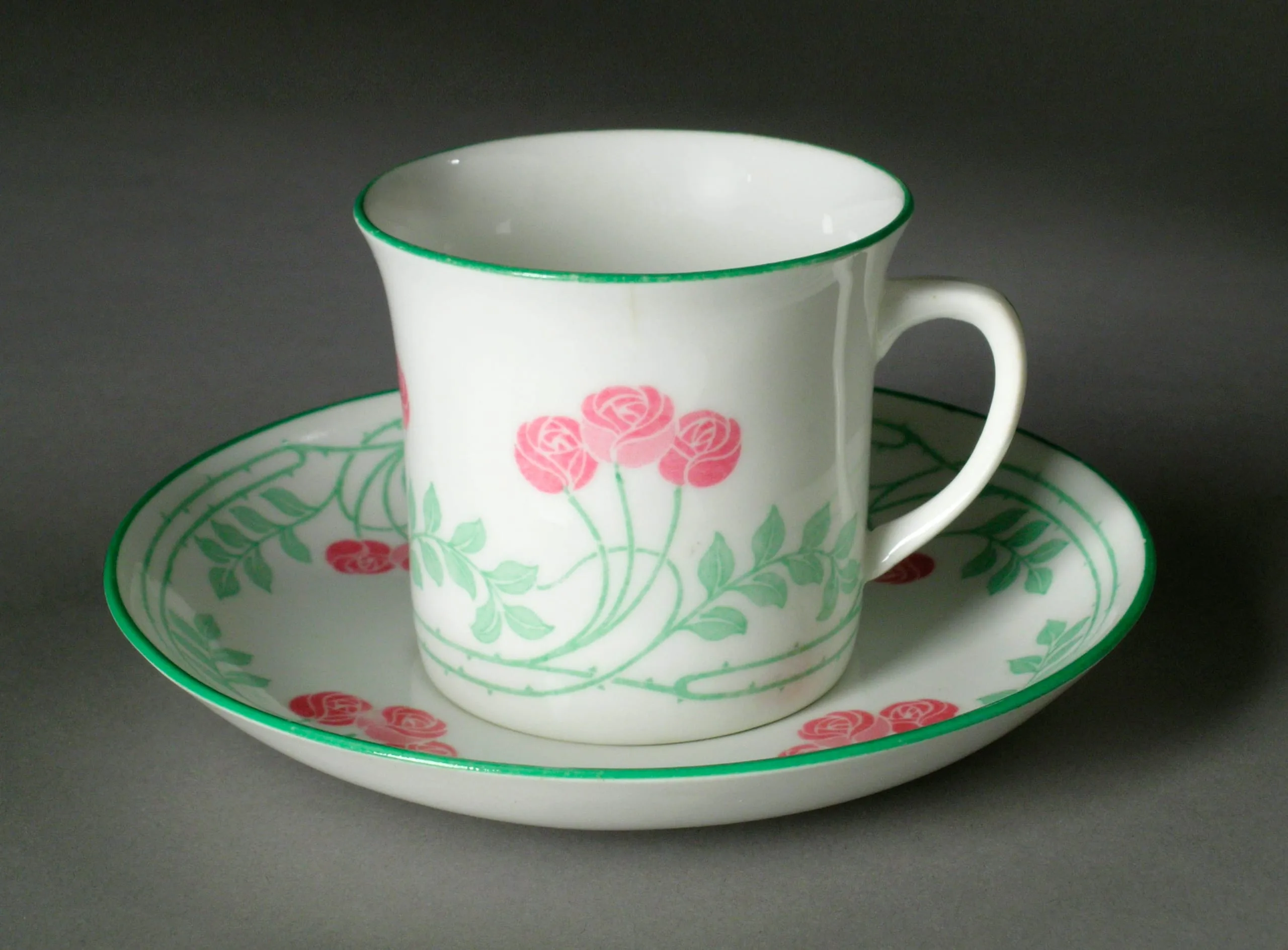 - Pink Rose Motif Teacup and Saucer