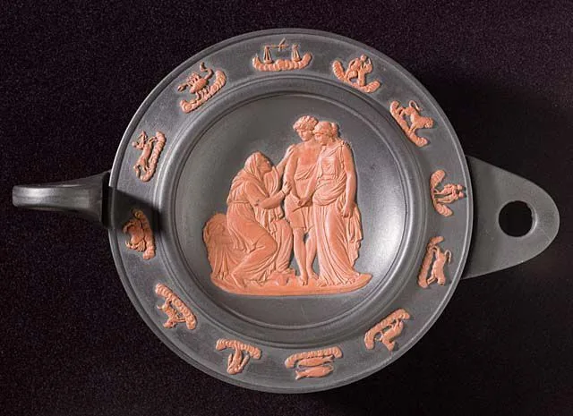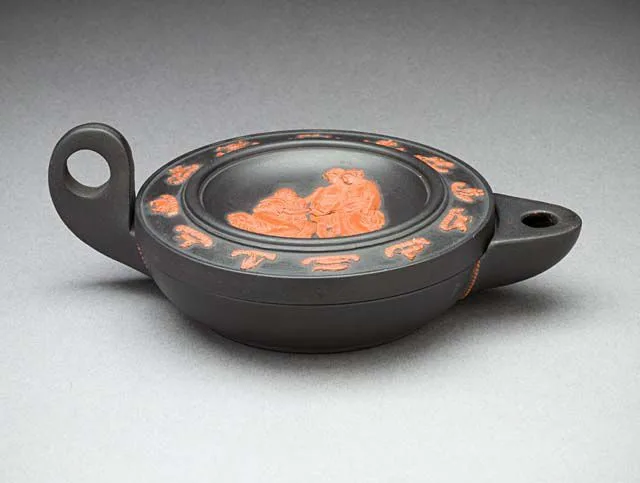 - Stoneware with metallic-oxide stain, rosso antico, black basalt