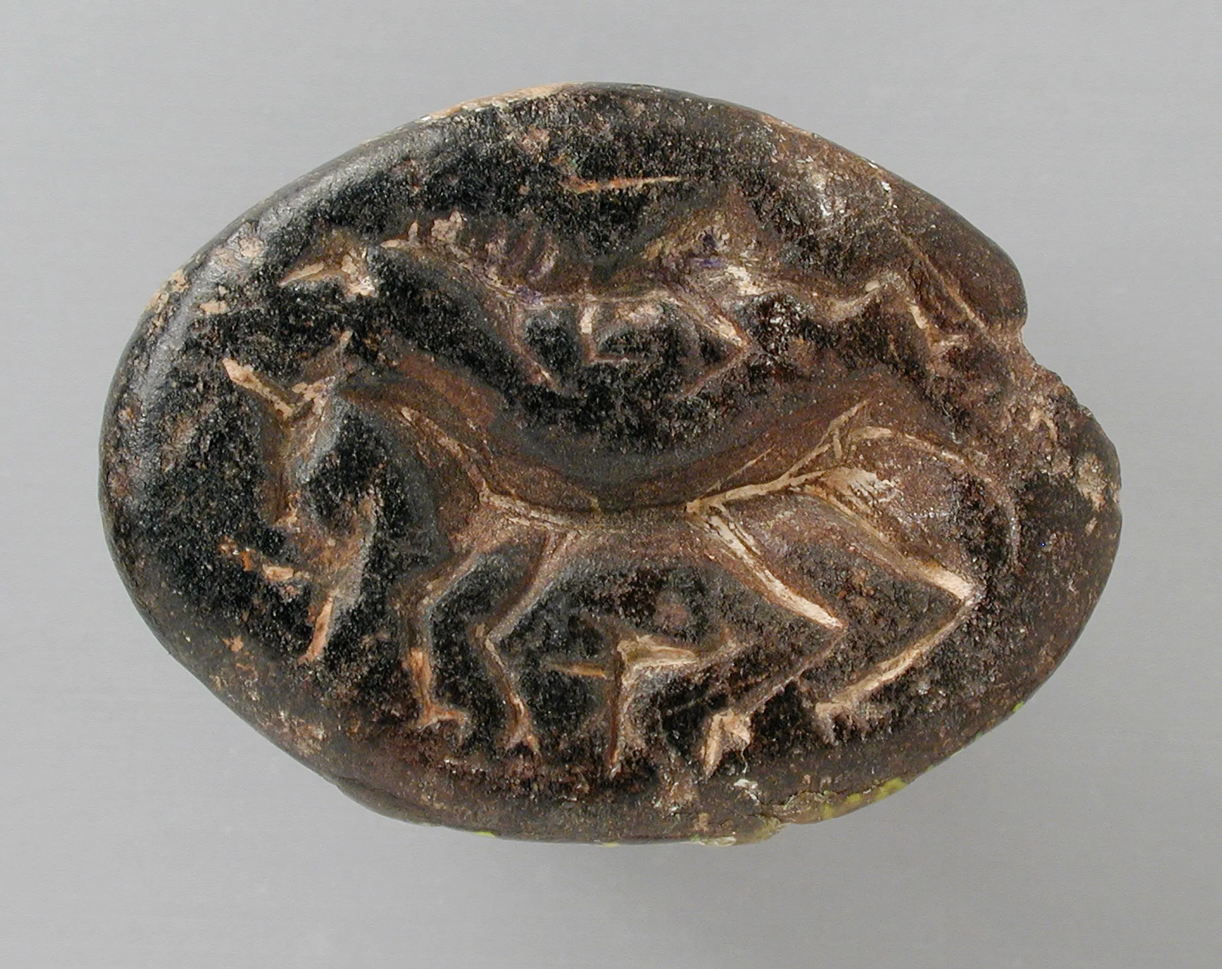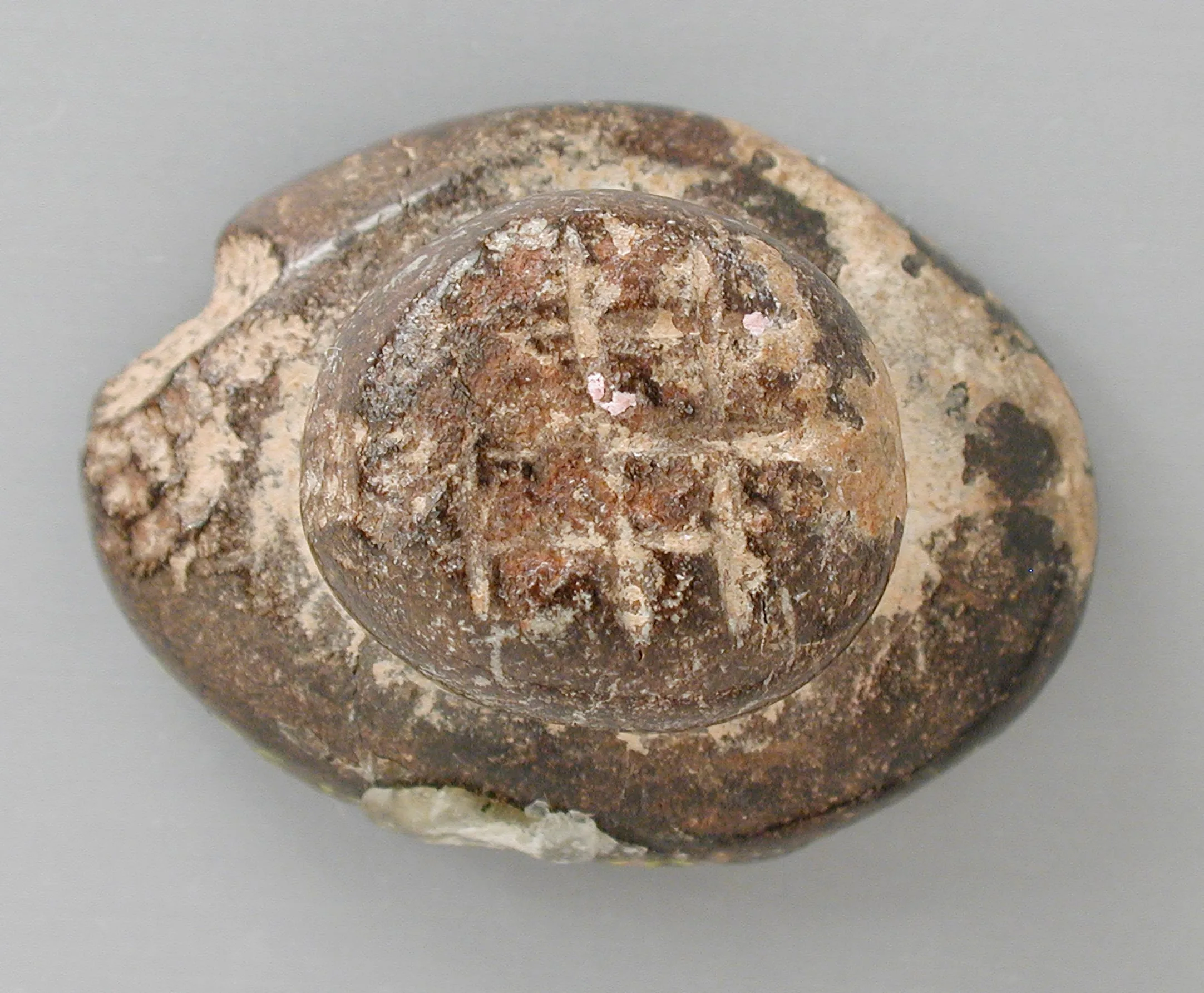 - Stamp Seal, Oval with Knob Handle with Crisscross Decoration