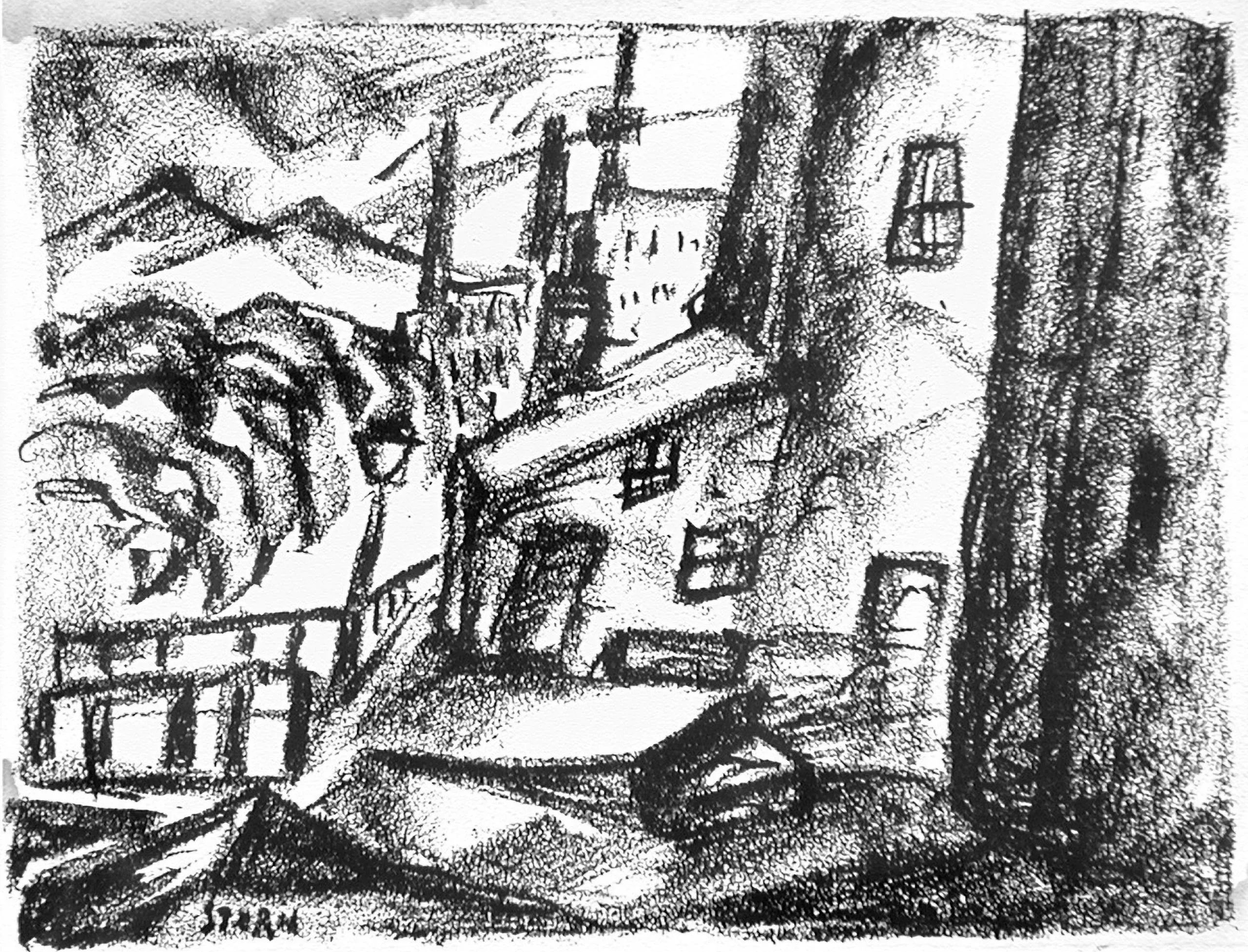 - Lithograph on laid paper