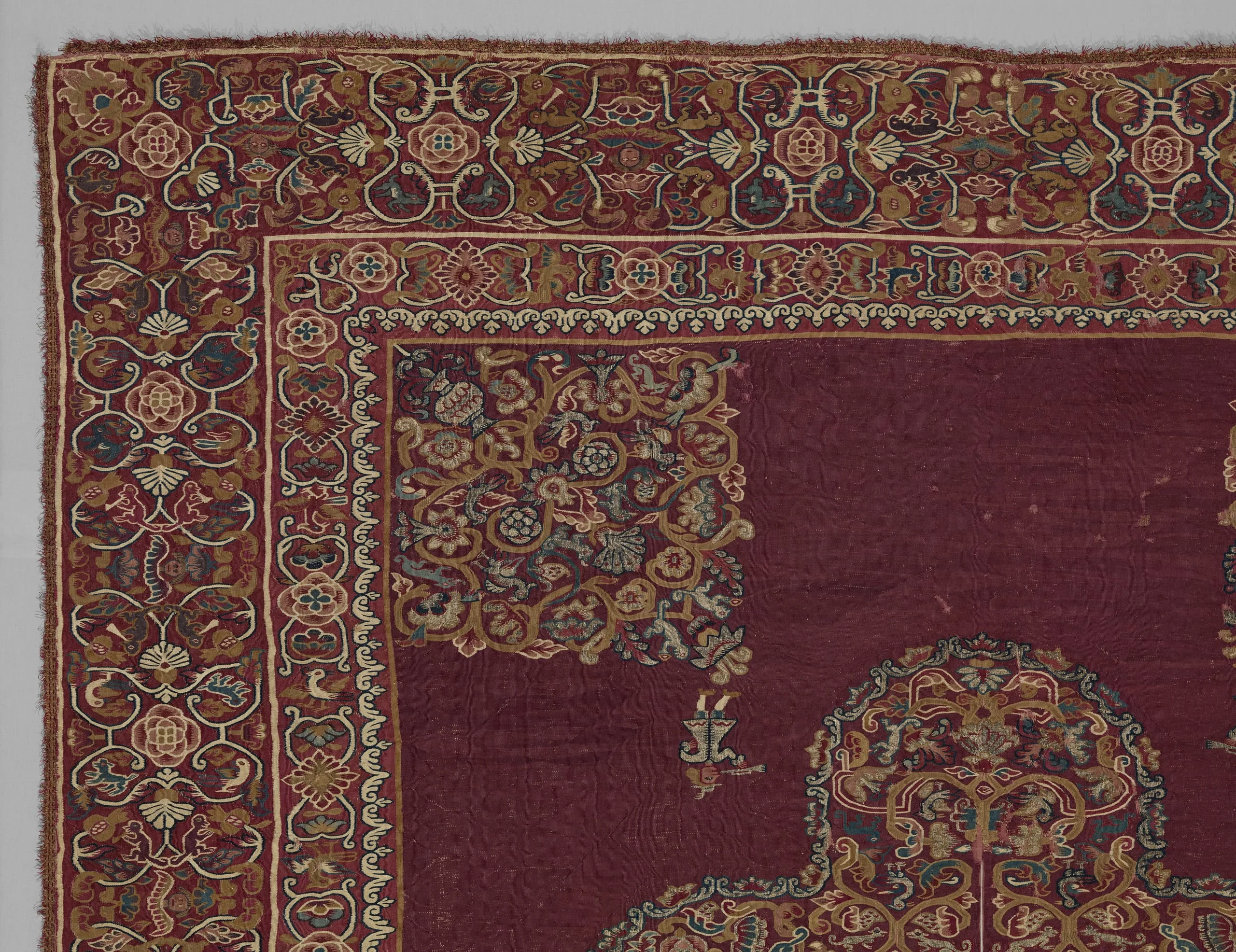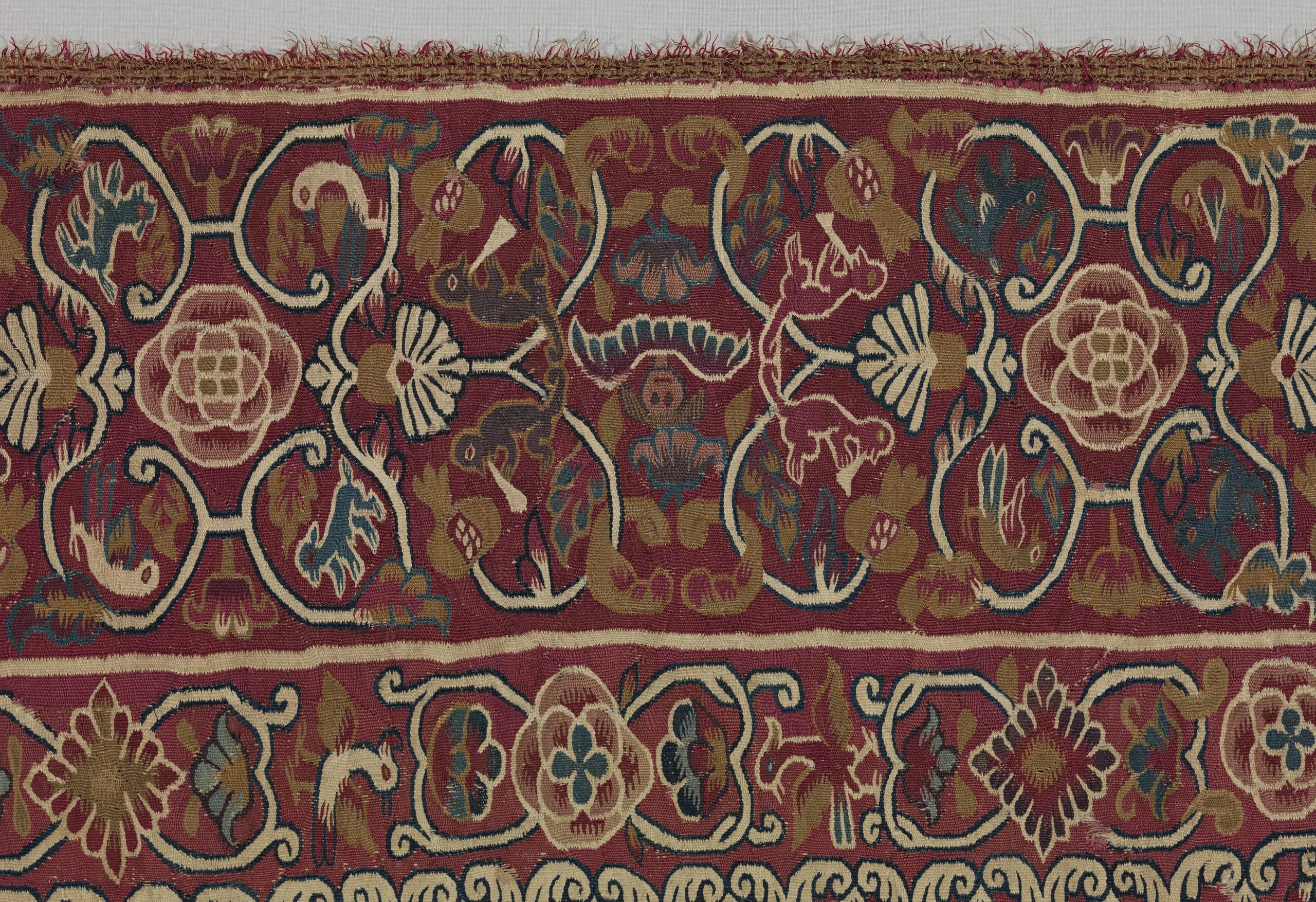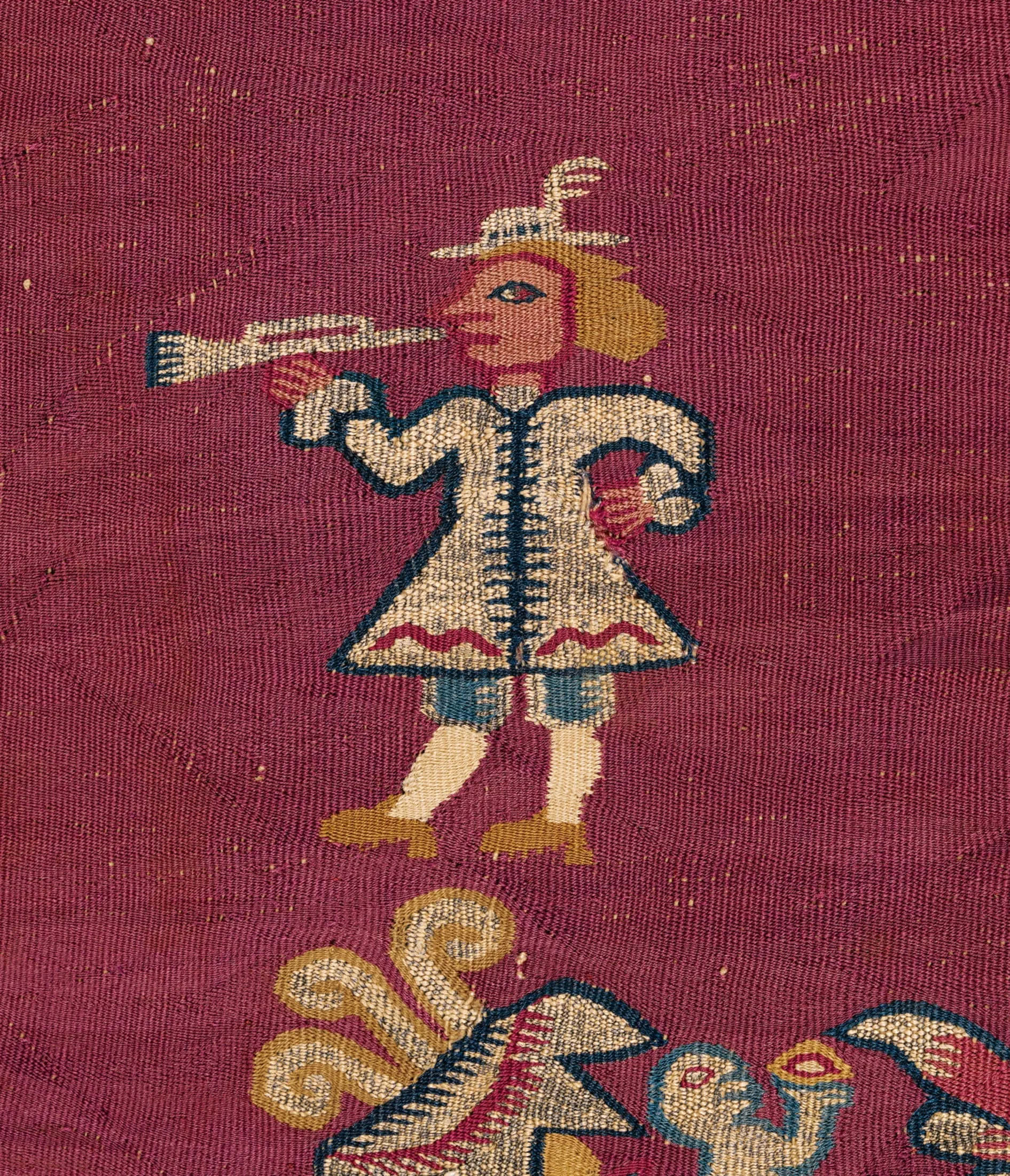- Cotton, camelid-fiber, and silk and metallic-thread tapestry weave