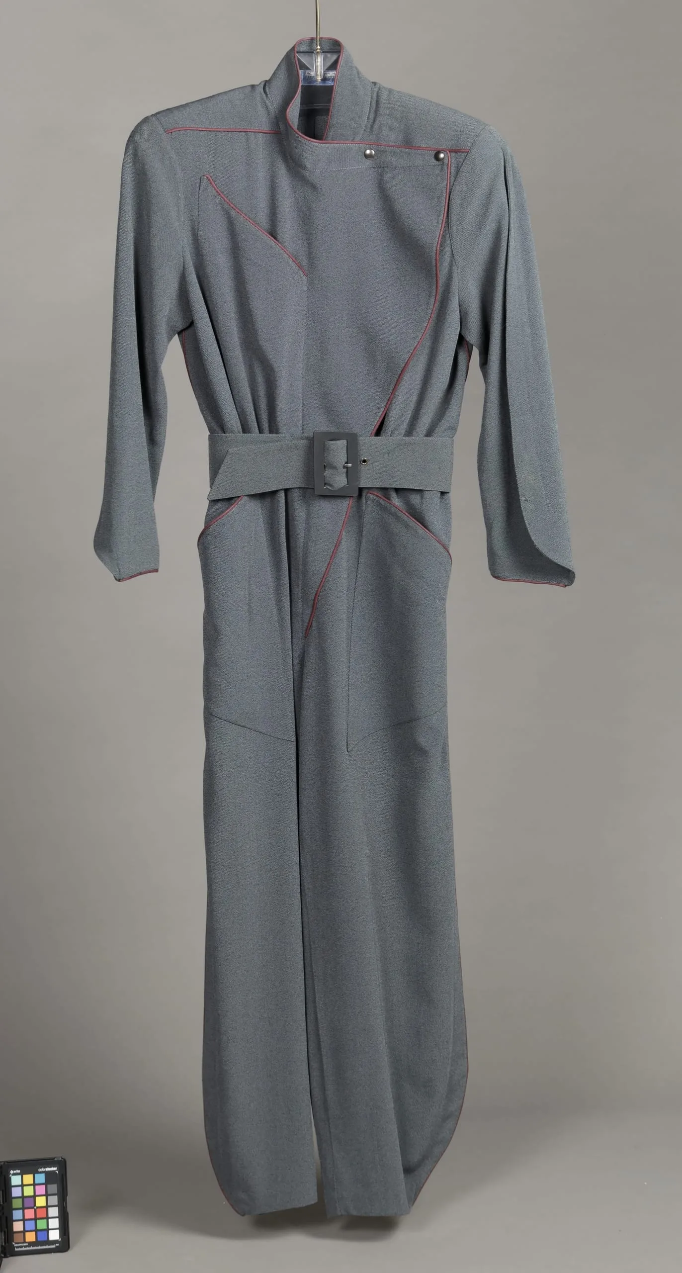 - Jumpsuit: wool twill; Belt: wool twill and metal