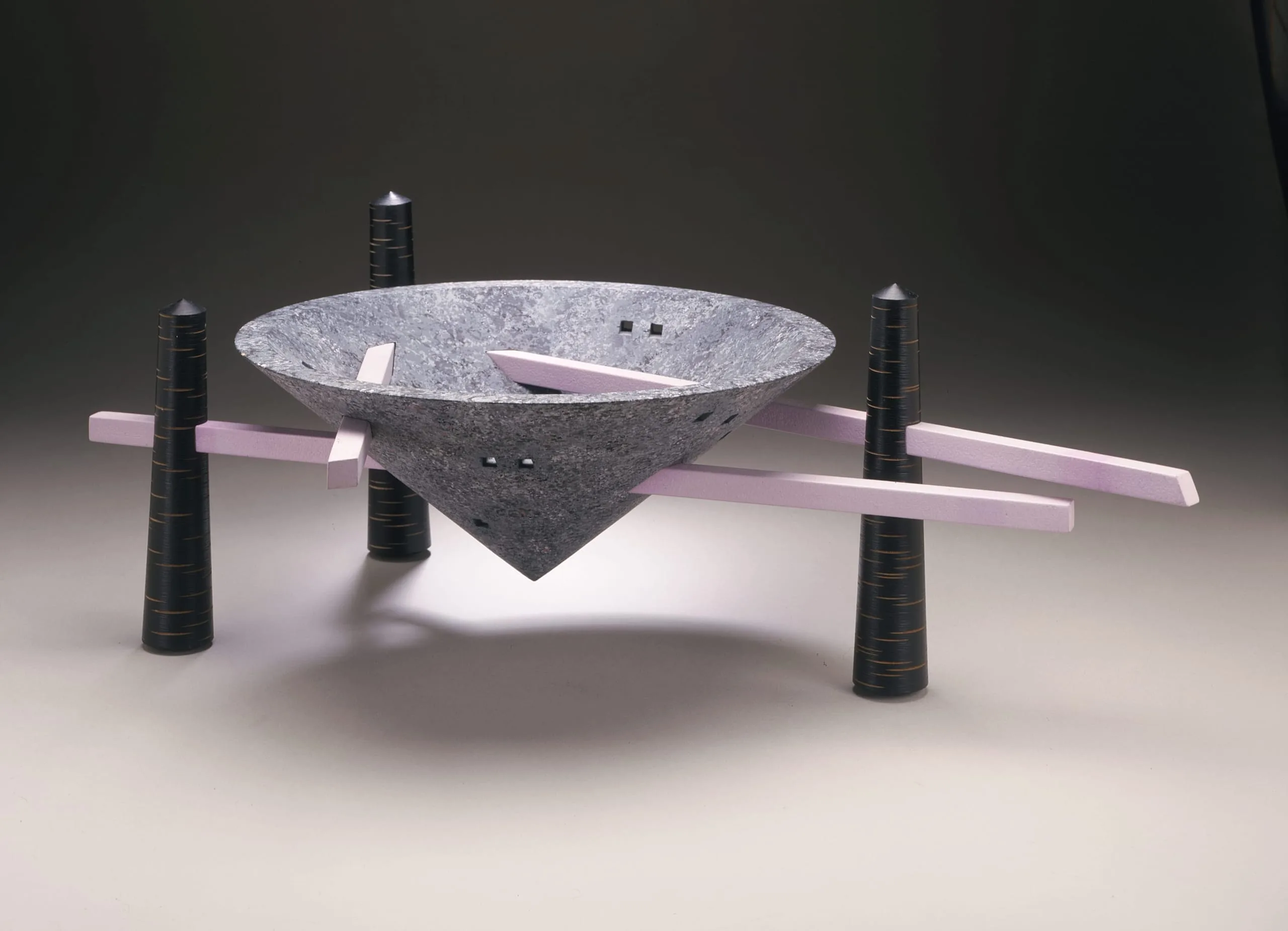 - MDF, cherrywood, mottled blue/white acrylic paint