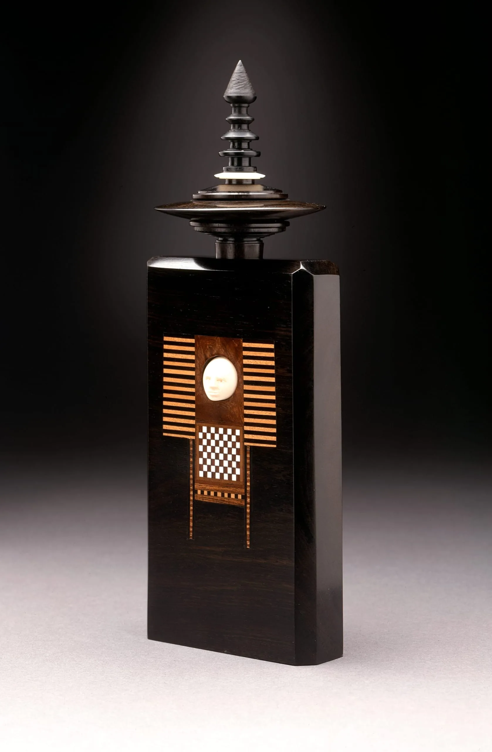 - .1) Ebony, corian, ivory (mask), inlays of various woods; .2) Maccaser ebony, ivory, inlays of various woods