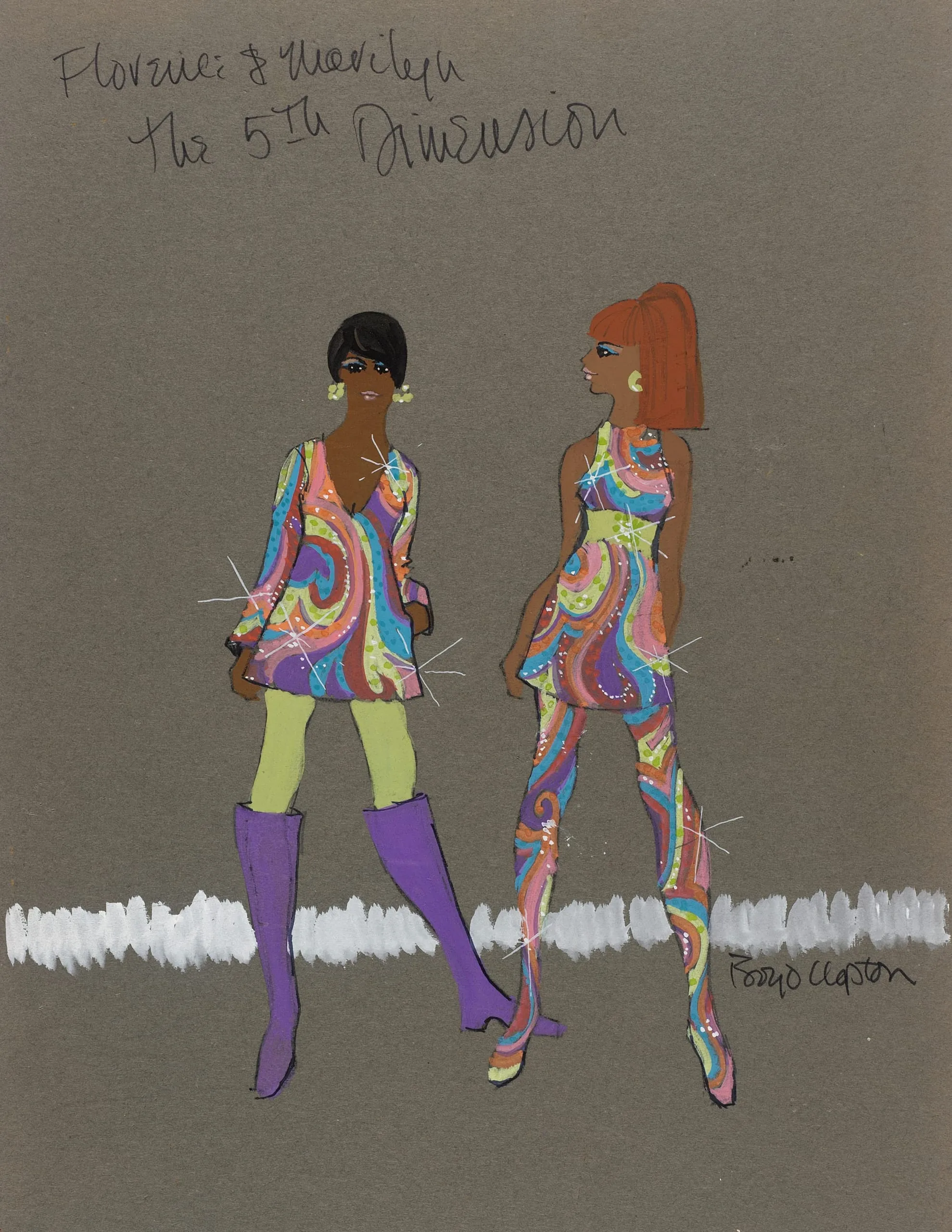 Costume Sketch for Marilyn McCoo and Florence LaRue of the Fifth Dimension