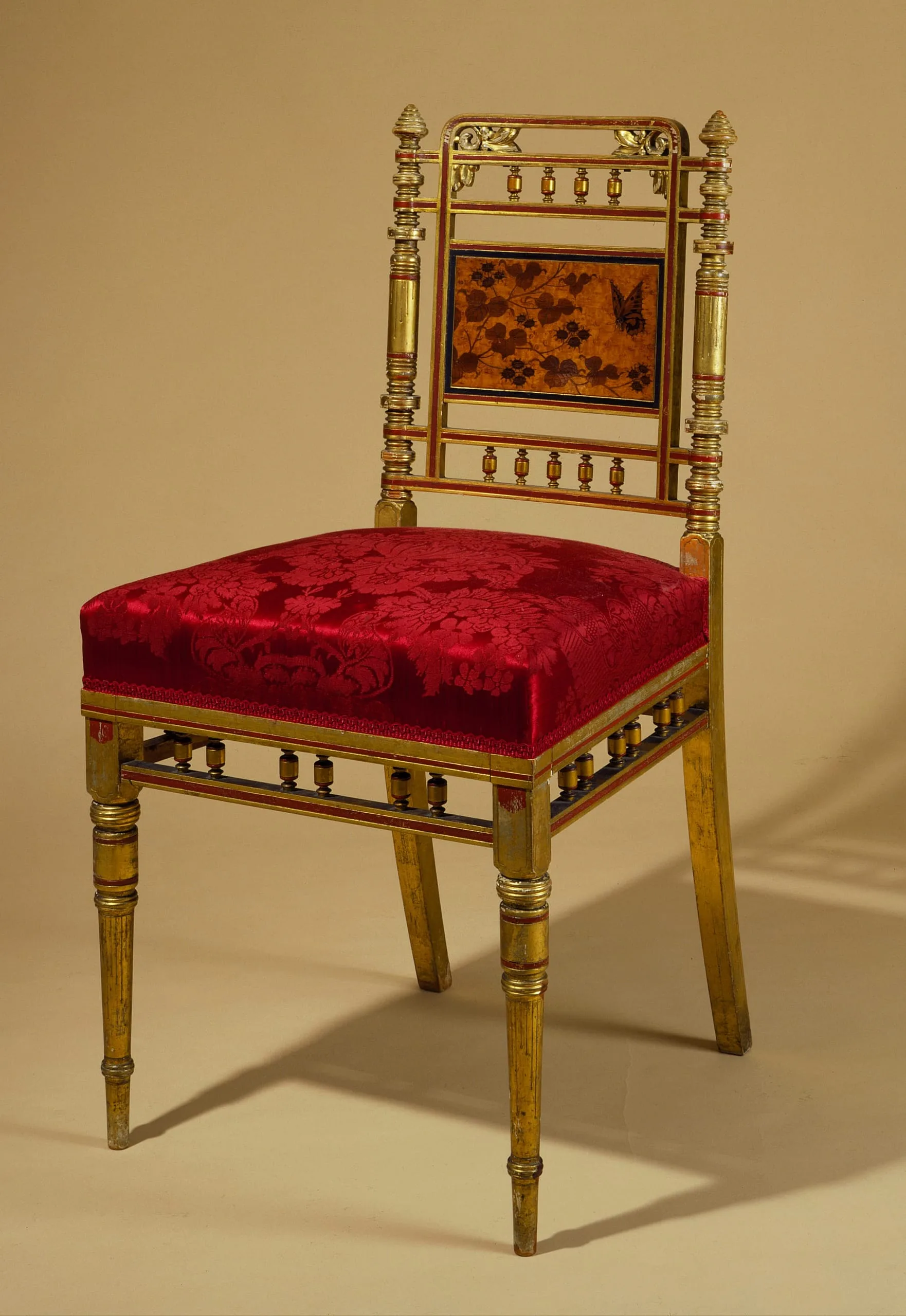 - Maple, bird's-eye maple, mahogany, ash, rosewood, gilt, paint, upholstery