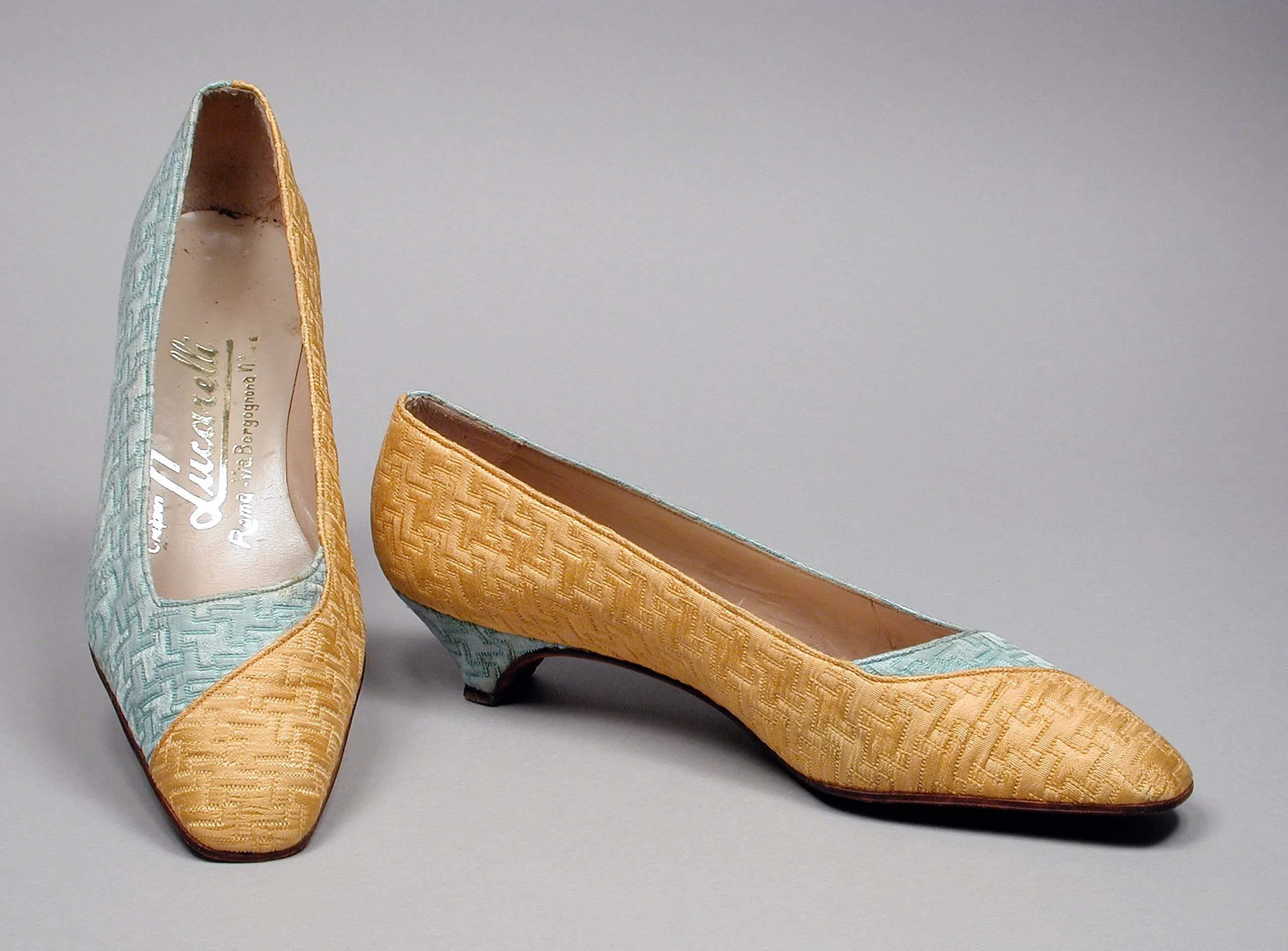 - Silk plain weave with warp patterning and supplementary weft patterning and leather