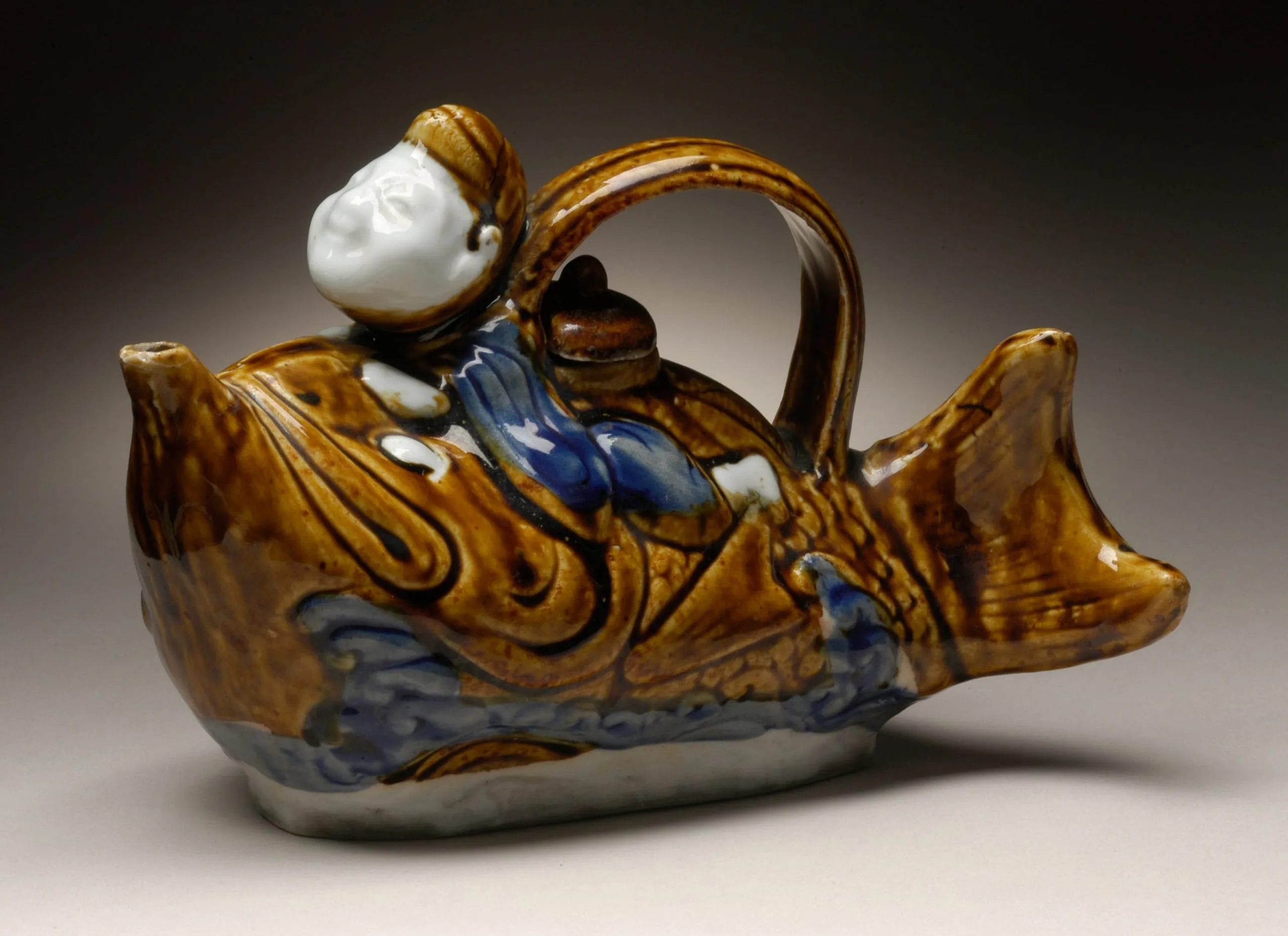 - Sake Ewer in the Form of Kinko Riding a Carp